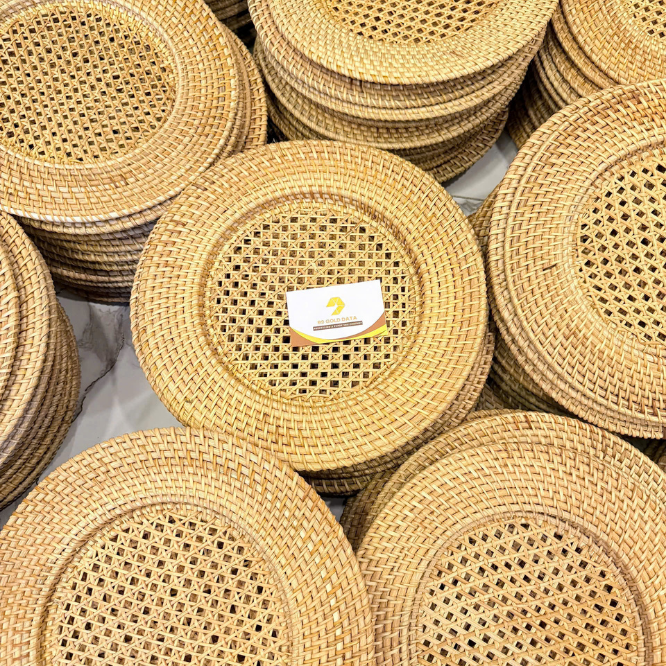 Assiette de présentation flexible en rotin rustique de 33 pouces, du Vietnam, pour service de pique-nique en extérieur et mariages dans les jardins 99 Gold Data