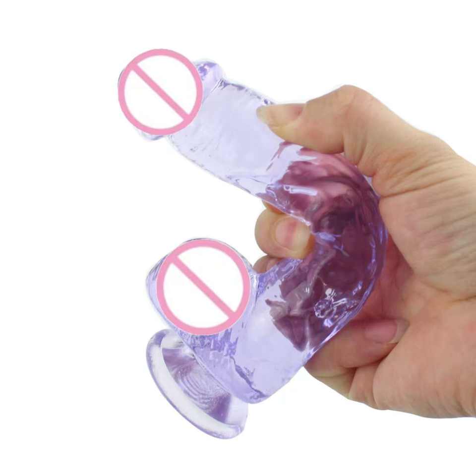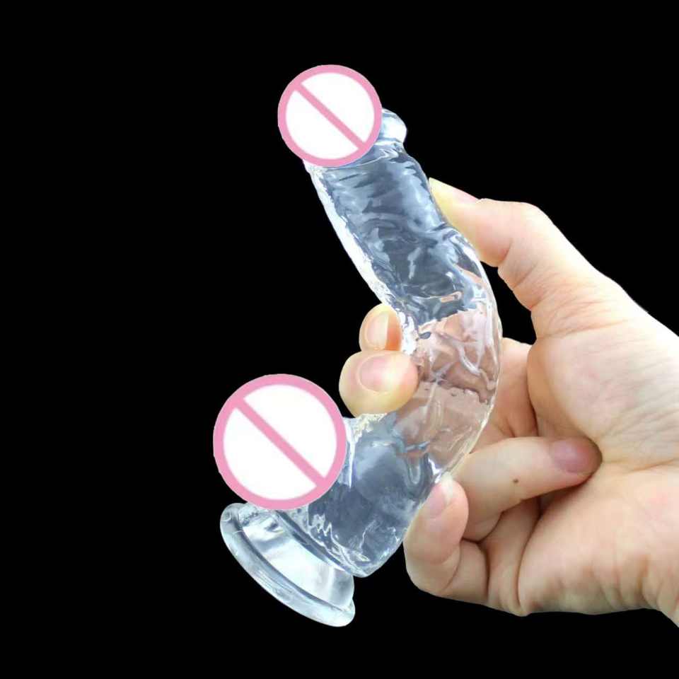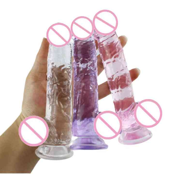 Flexible Soft Transparent Crystal Realistic Dildos Massager With Suction Cup Base