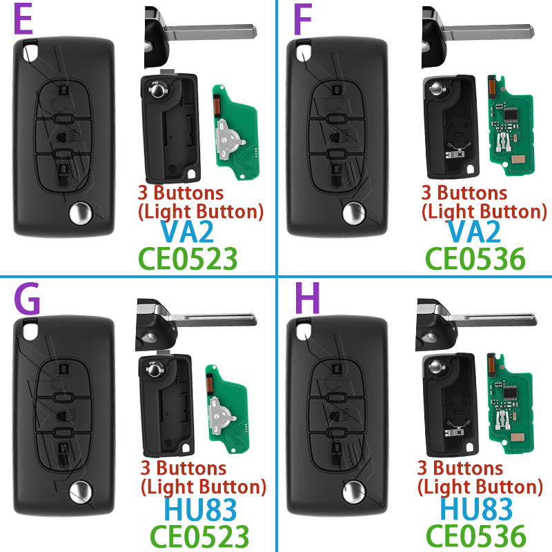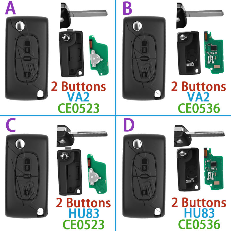 Clé de voiture à distance pour Peugeot 207 307 308 408 pour Citroën C1 C2 C3 C4 C5 Picasso CE0523 ID46 PCF7941 CE0536 PCF7961 433ASK/FSK