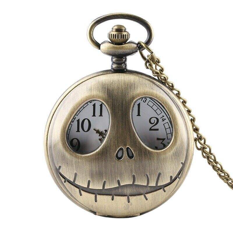 Montre de poche à quartz avec pendentif en forme de crâne de clown aux grands yeux et d'épouvantail, chaîne, collier créatif antique, montre en alliage de 47 mm