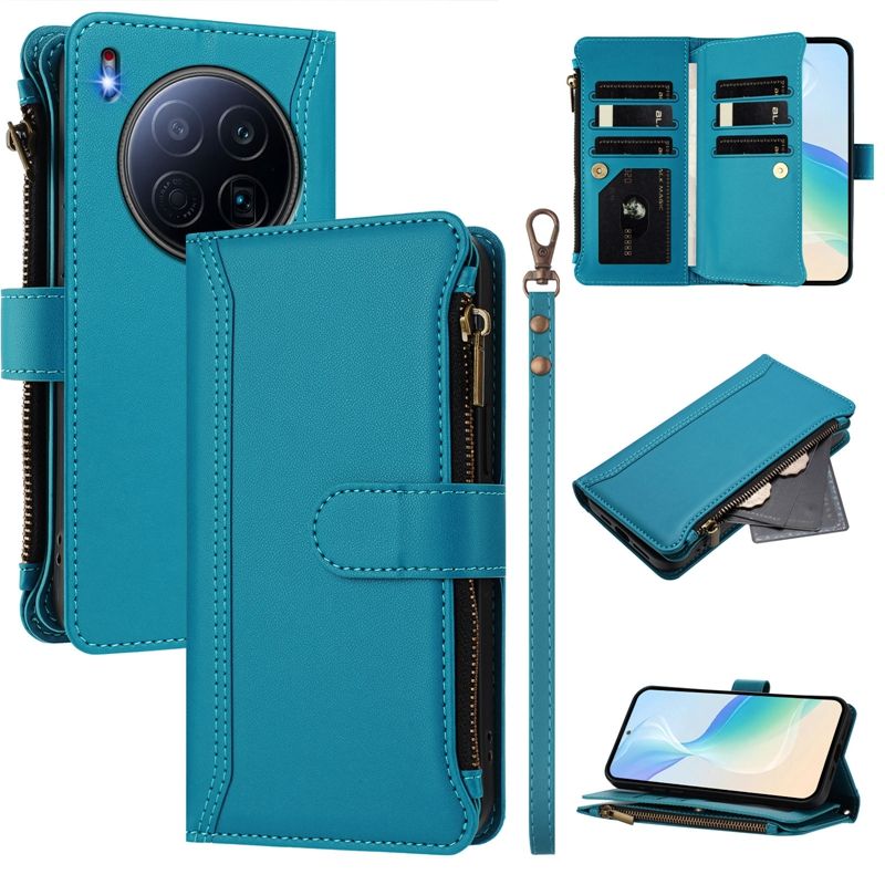 Étui en Cuir PU à Rabat avec Fentes pour Cartes, Housse de Téléphone Portefeuille avec Fermeture Éclair pour Tecno Camon 40 Premier GT30 Pro