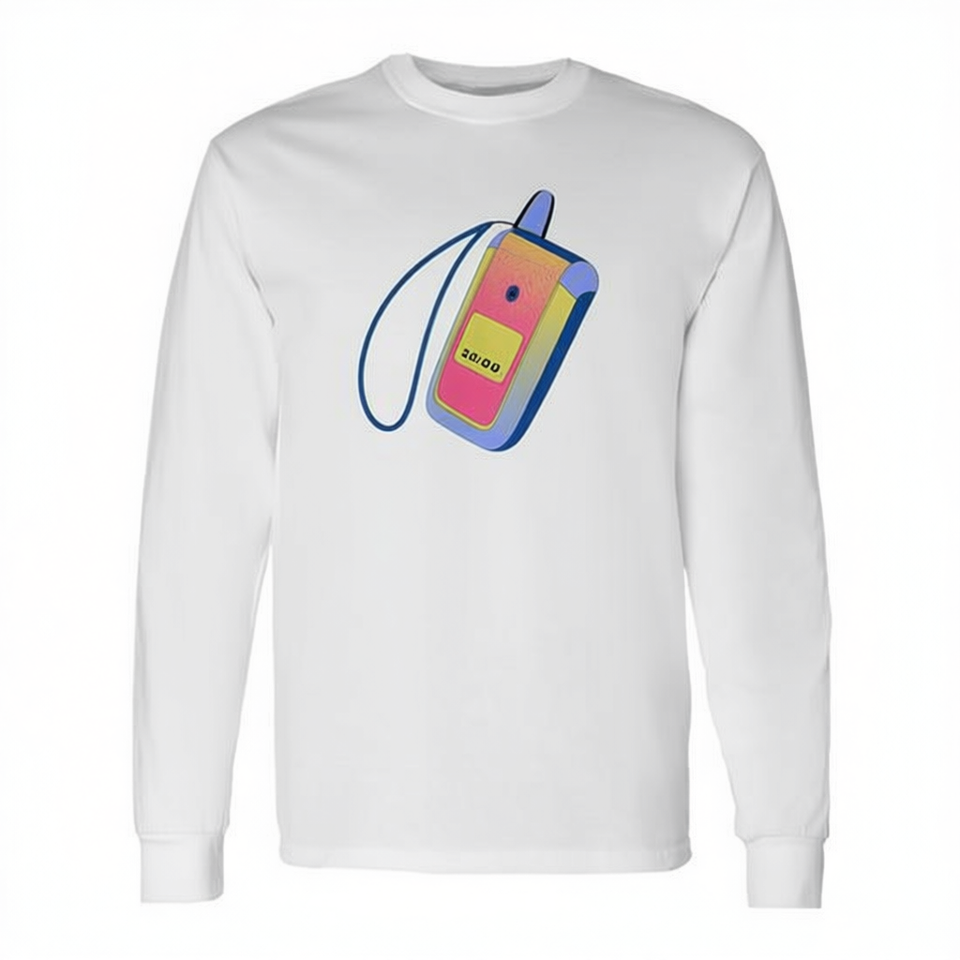 T-shirt à manches longues unisexe à col rond avec impression numérique pour adultes, promotionnel, motif téléphone à clapet et smartphone