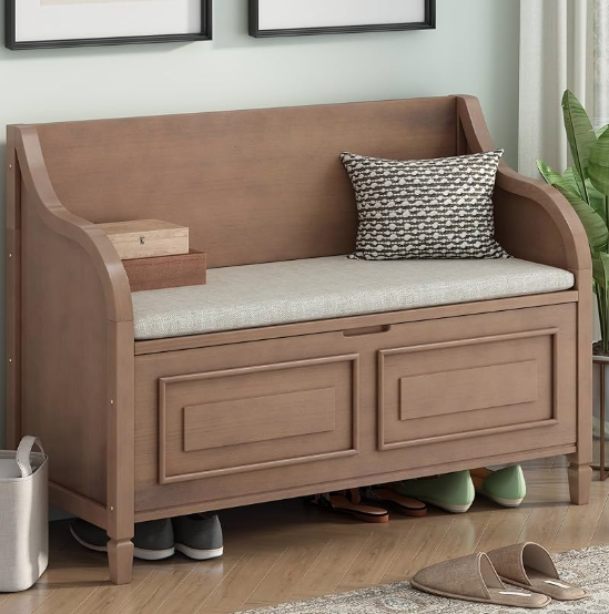 Banc de rangement en bois massif avec couvercle rabattable (entrée)