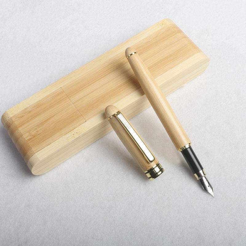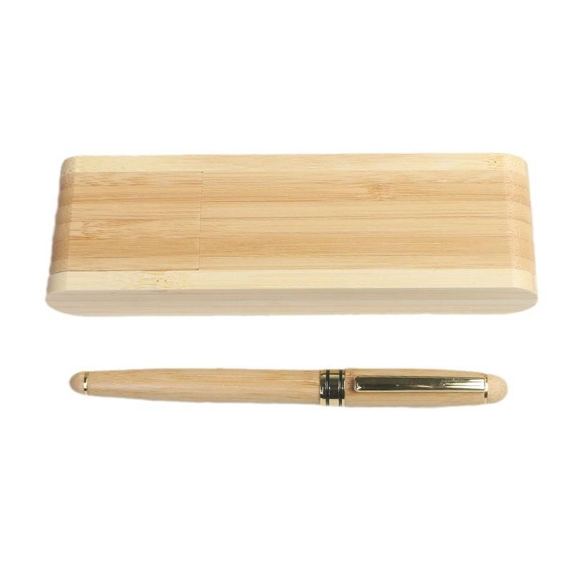 Boîte en bois à rabat, ensemble de stylos en bambou, cadeau d'affaires, stylo à bille promotionnel, pointe de 0,5 mm, encre noire