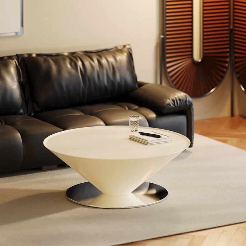 Table basse flottante de style français, crémeuse, en forme de soucoupe volante, table conique flottante, artistique, minimaliste, pour salon, usage domestique, table en métal
