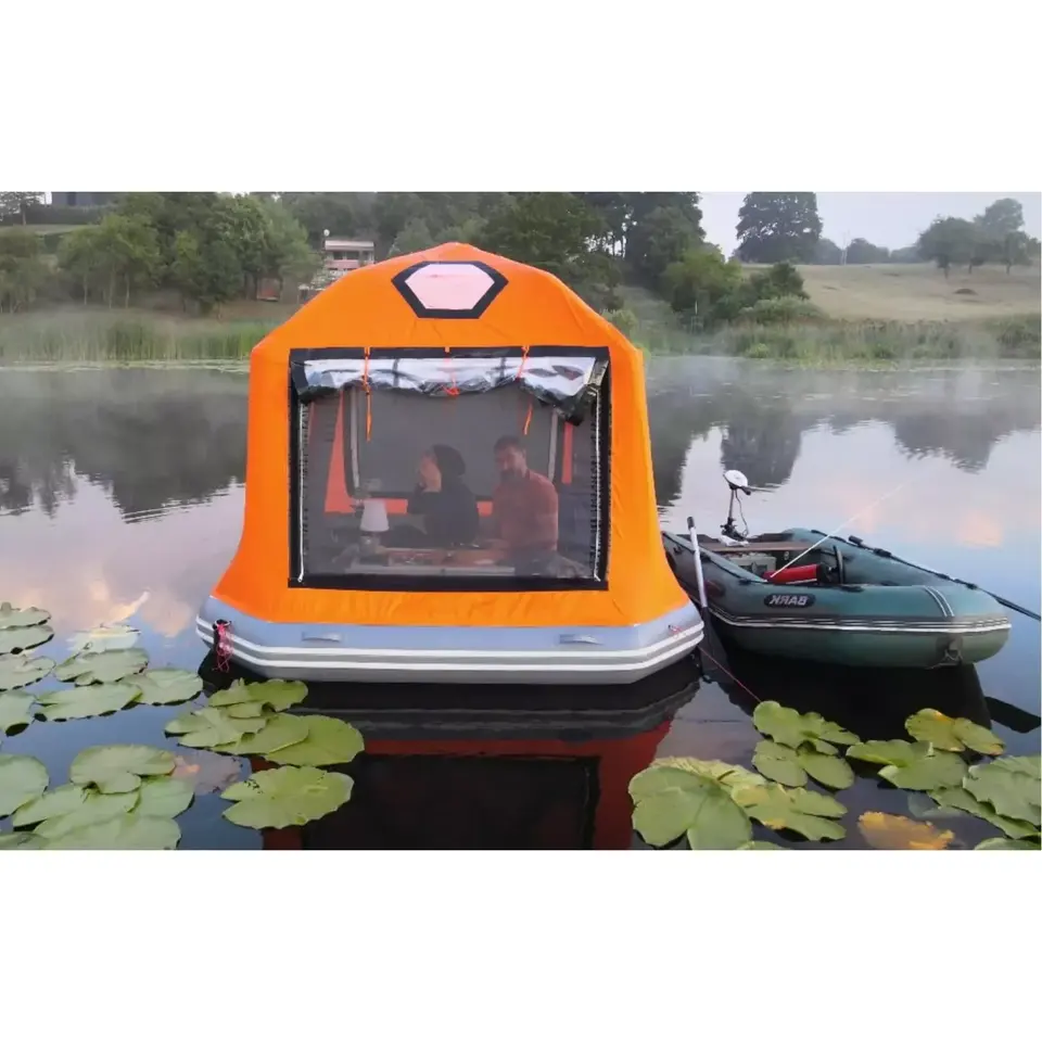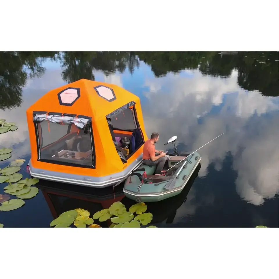 Tente de camping flottante - 4 personnes, protection UV 80, gonflage rapide avec revêtement acrylique d'un côté et colonnes gonflables en PVC pour bateau