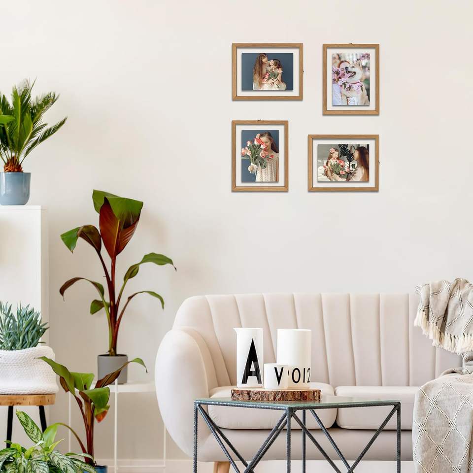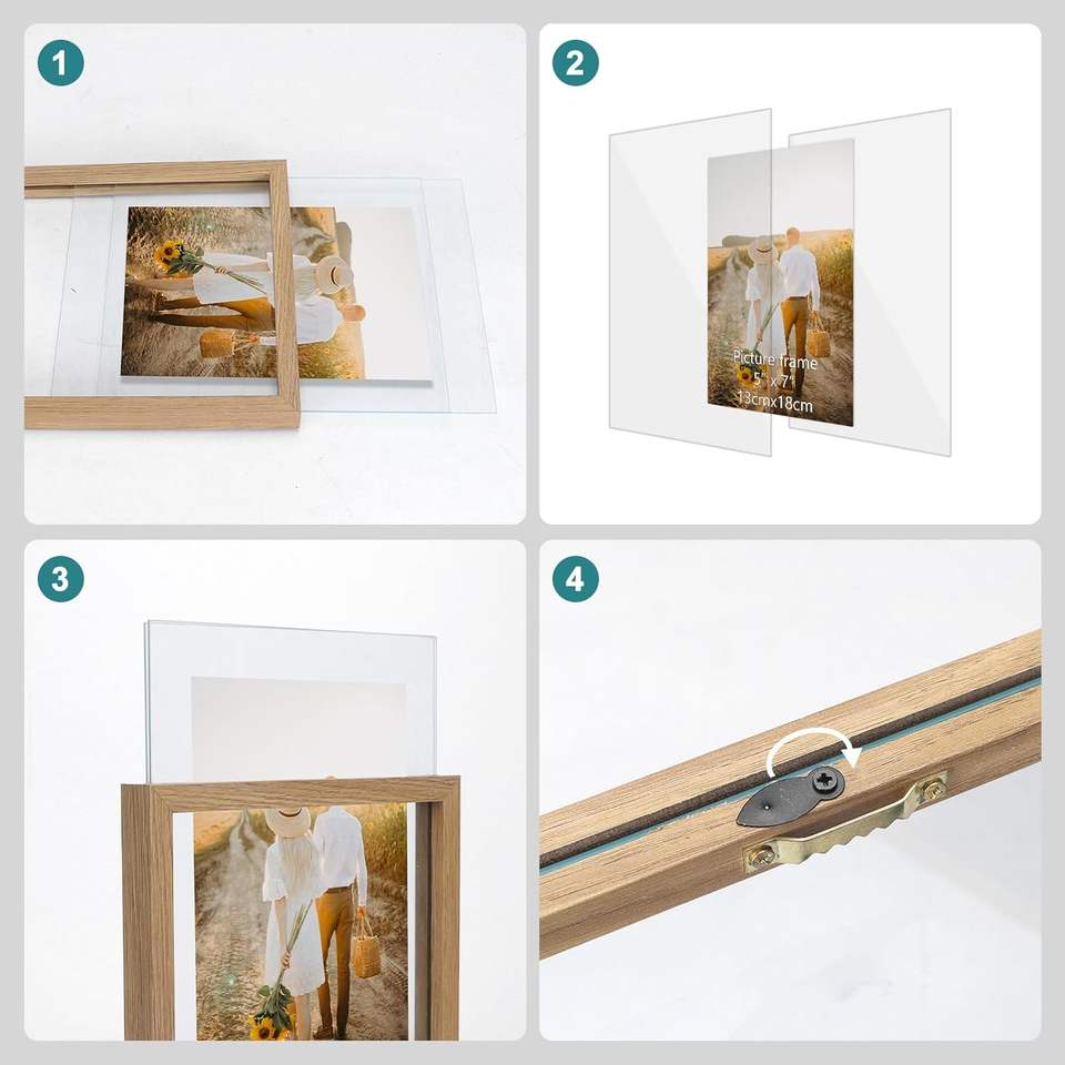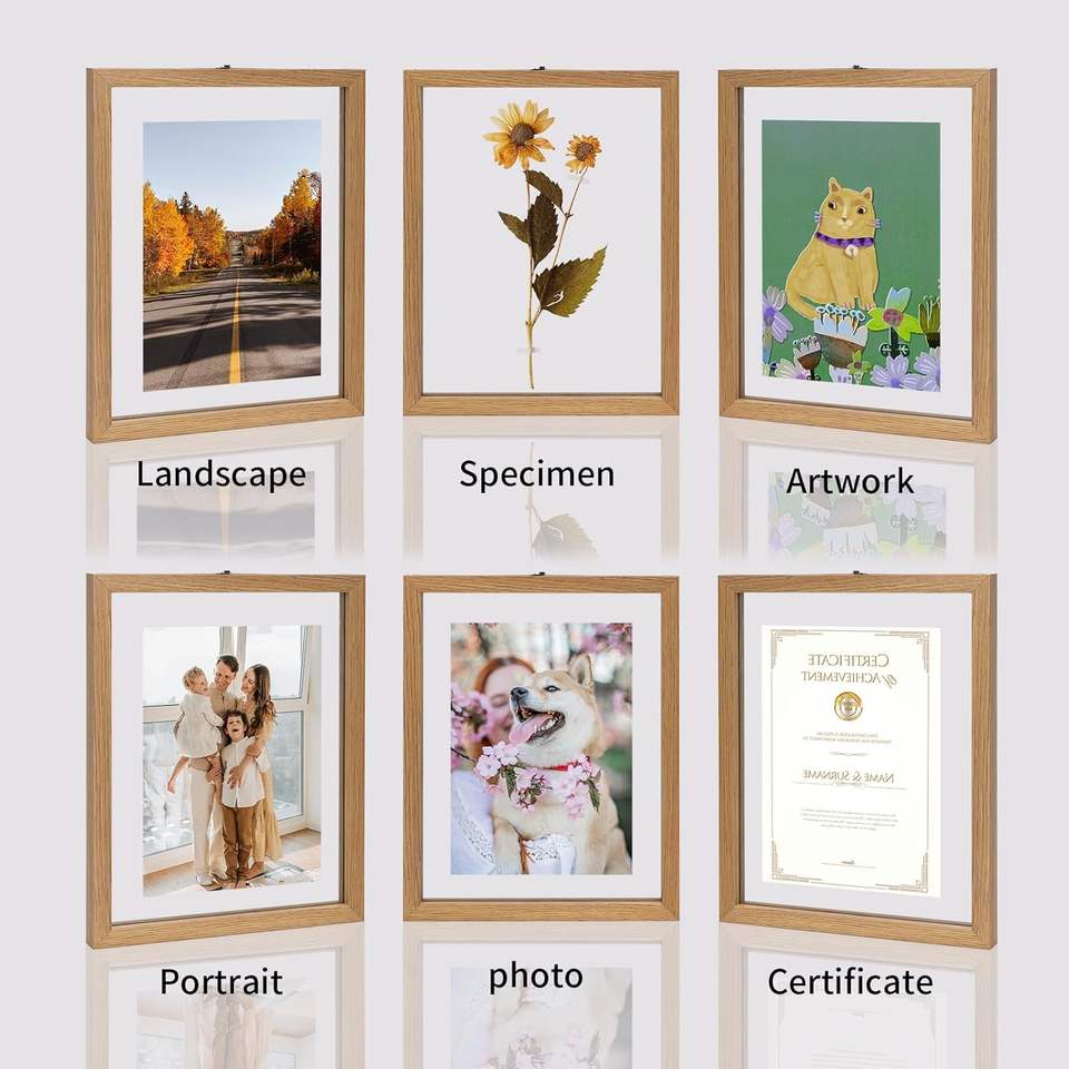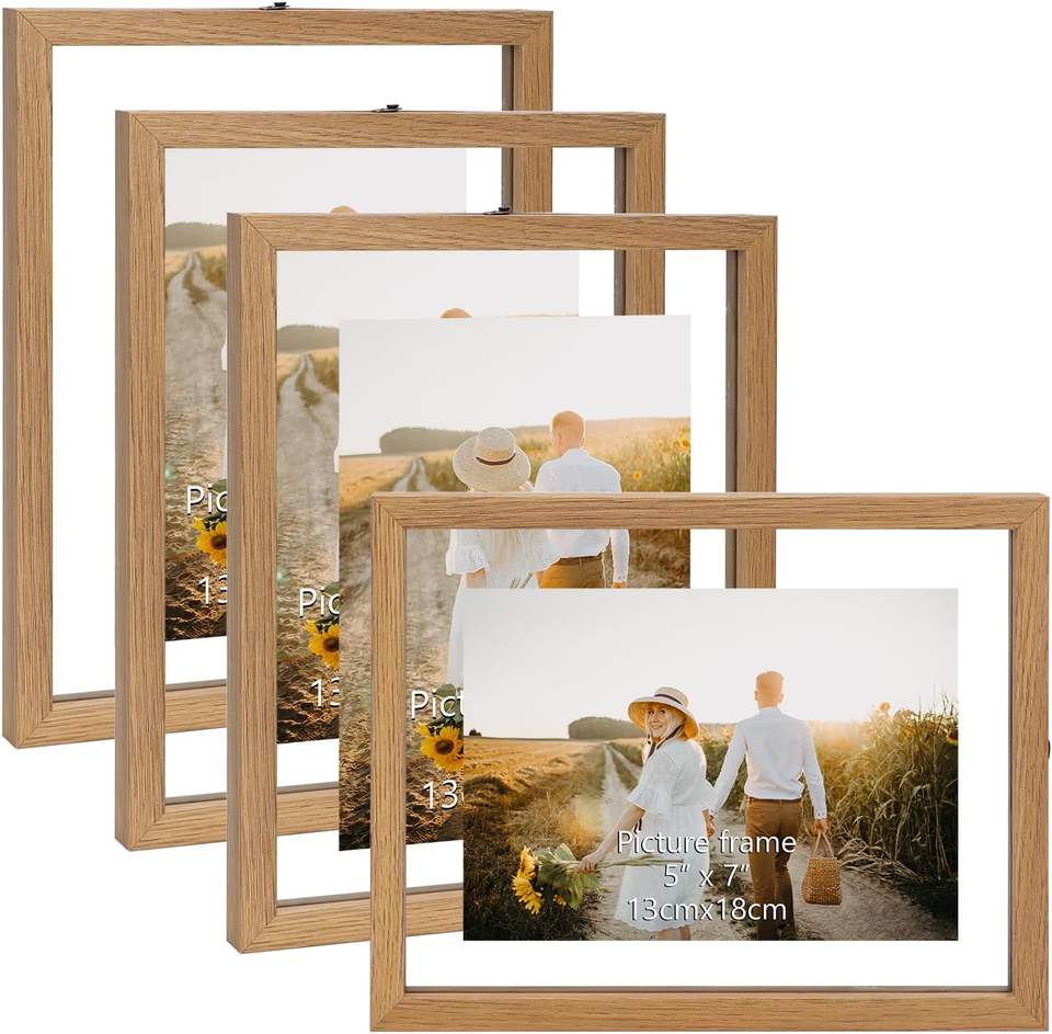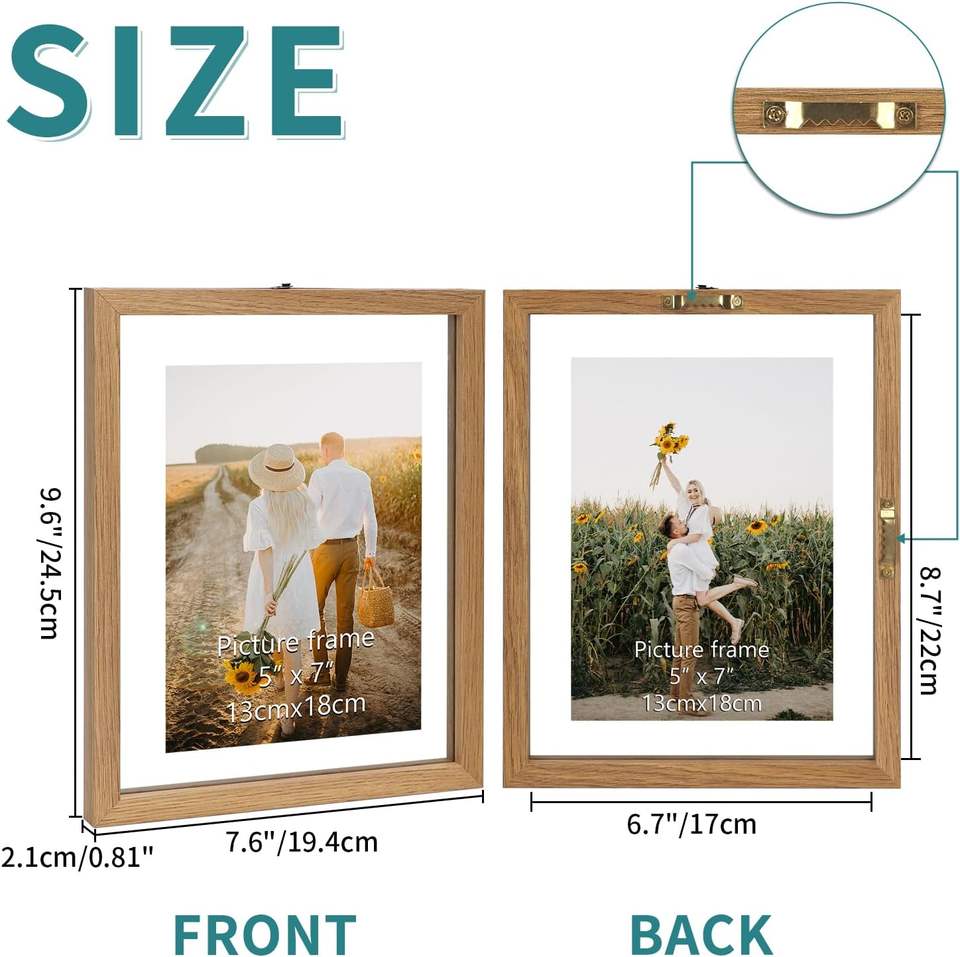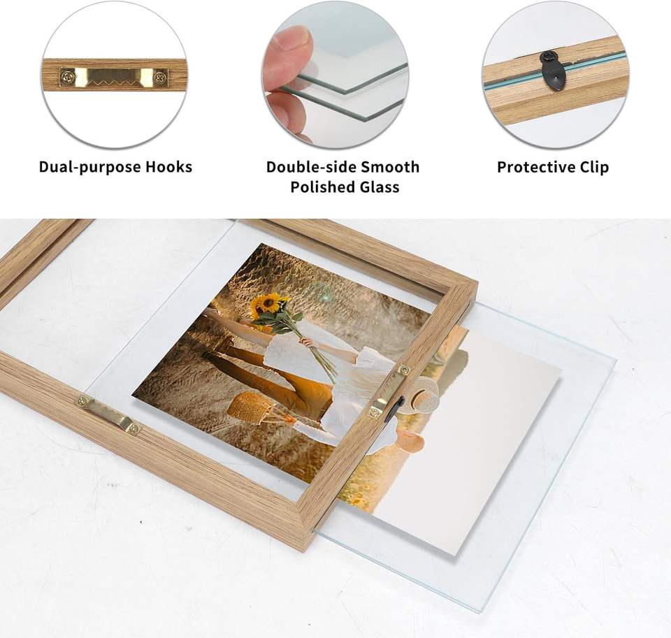 Cadres photo flottants en bois naturel Cadre flottant Tenture murale Double verre Famille Flotteur Cadre photo Affichage Bois d'origine