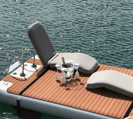 Île flottante en bois pour se prélasser (pour piscines peu profondes)