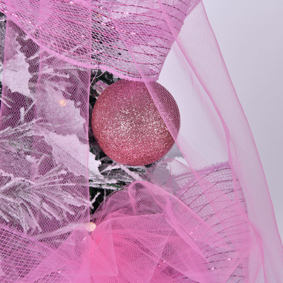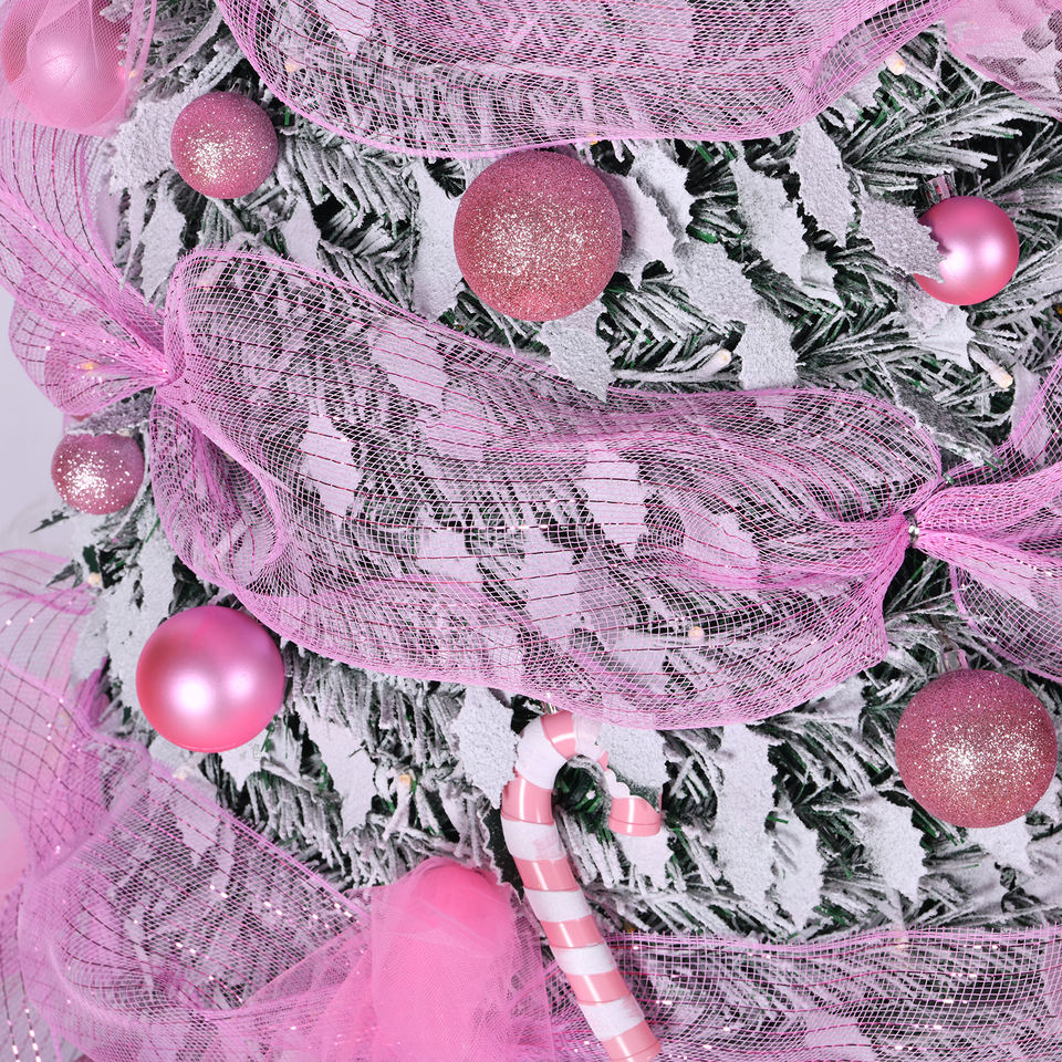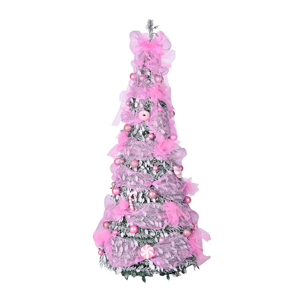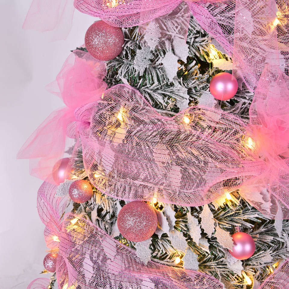 Sapin de Noël pré-éclairé et pré-décoré floqué 6FT, sapin de Noël pop-up et lumières LED blanc chaud, décorations de fête de Noël, rose