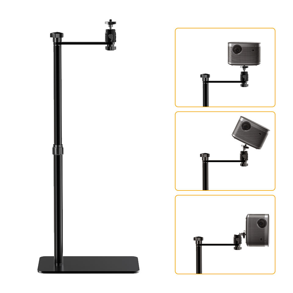 Support de projecteur au sol avec plateau, support métallique réglable multi-angles, rotation à 360° pour films et vidéos