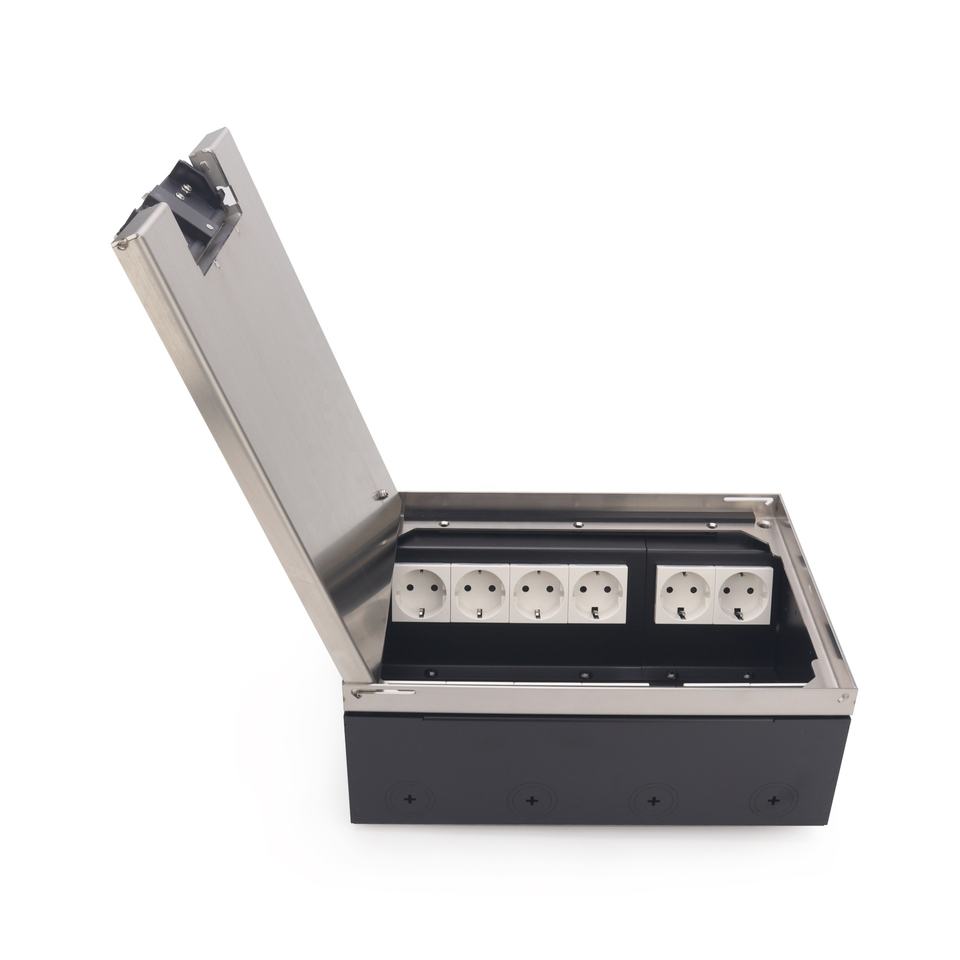 Floor Recessed Electrical Floor Box with Recessed Stainless Steel Covers for Modern Power Access