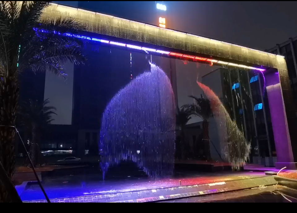 Fontaine de fontaine de cascade de rideau d'eau d'imprimante de graphiques attrayante debout de plancher