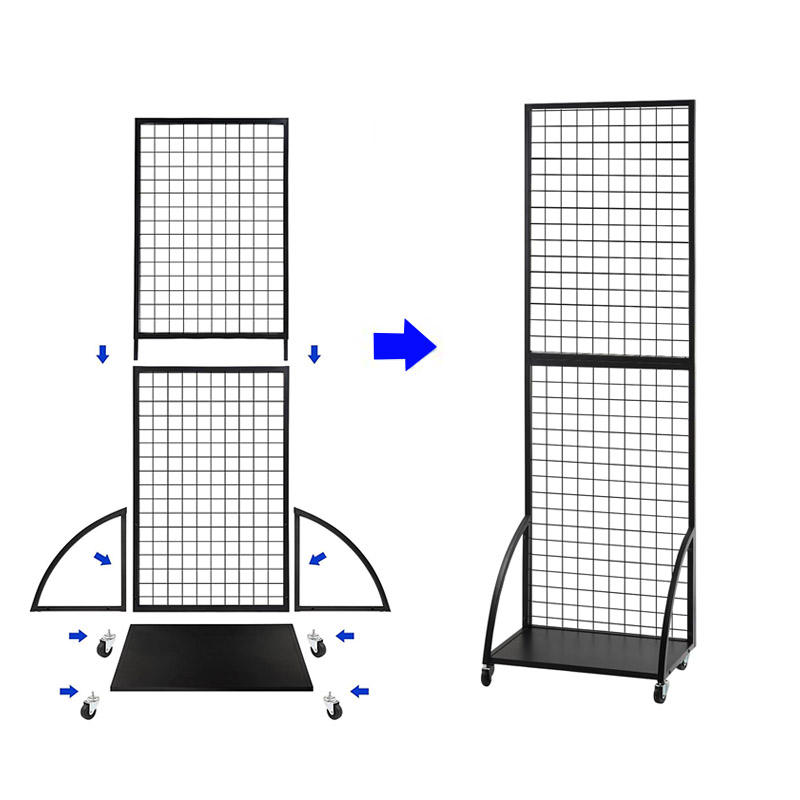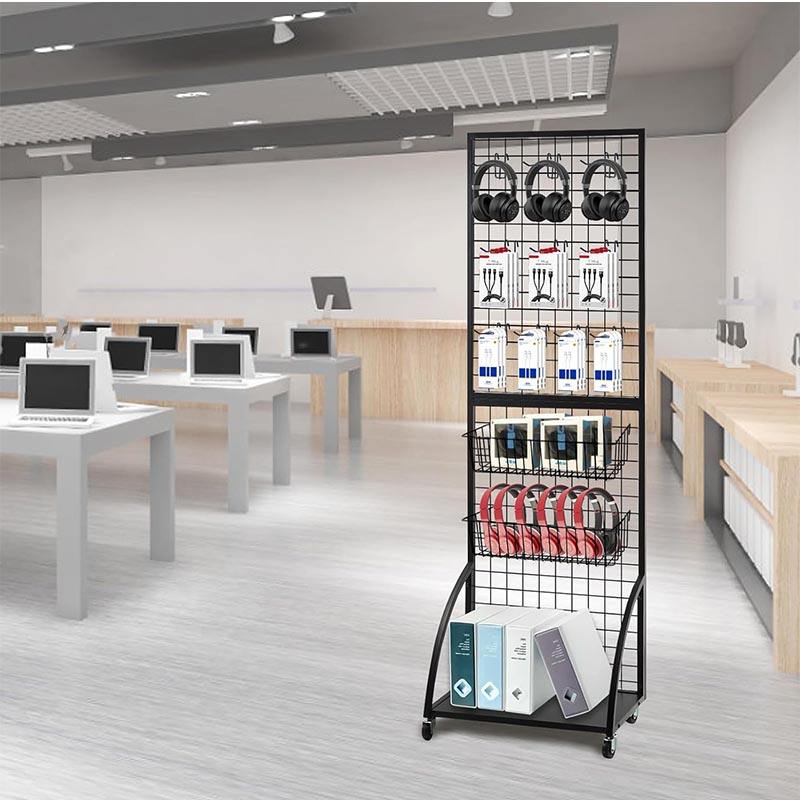 Étagère de présentation murale en grille métallique pour supermarché, présentoir en panneaux de maille métallique pour la vente au détail