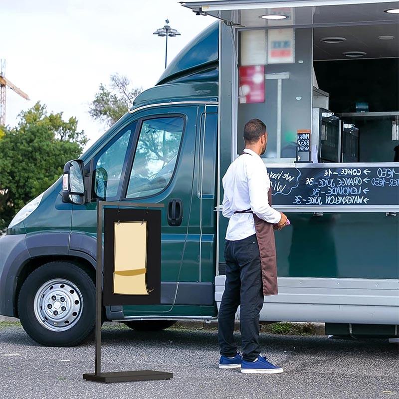 Support de signalisation au sol avec tableau d'écriture à la craie Trottoir en acier noir de haute qualité Un panneau pour magasin de détail Cafe Bar