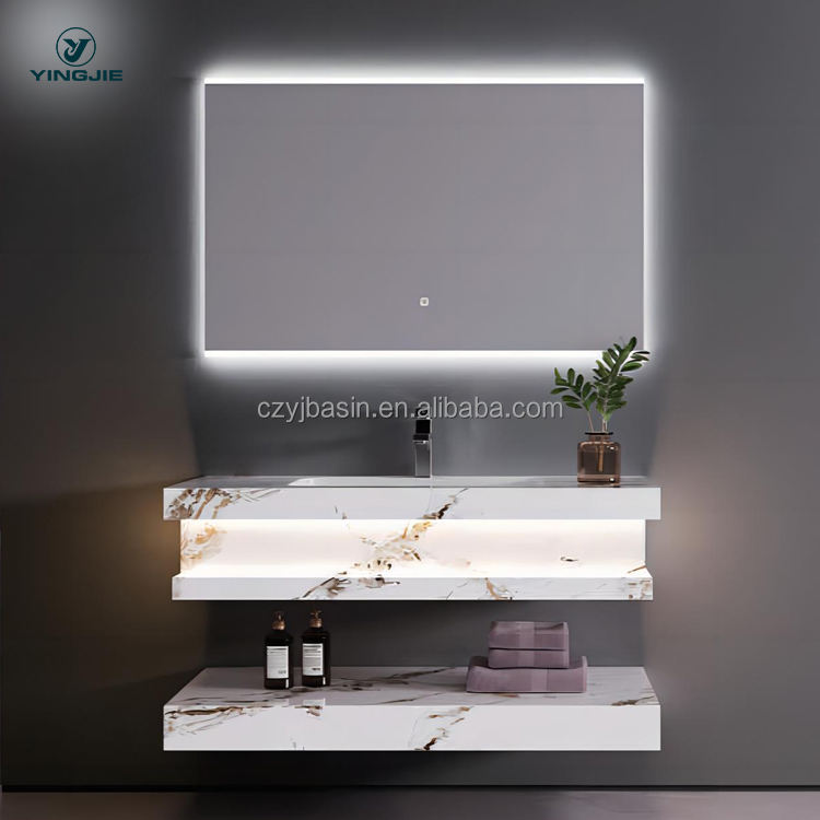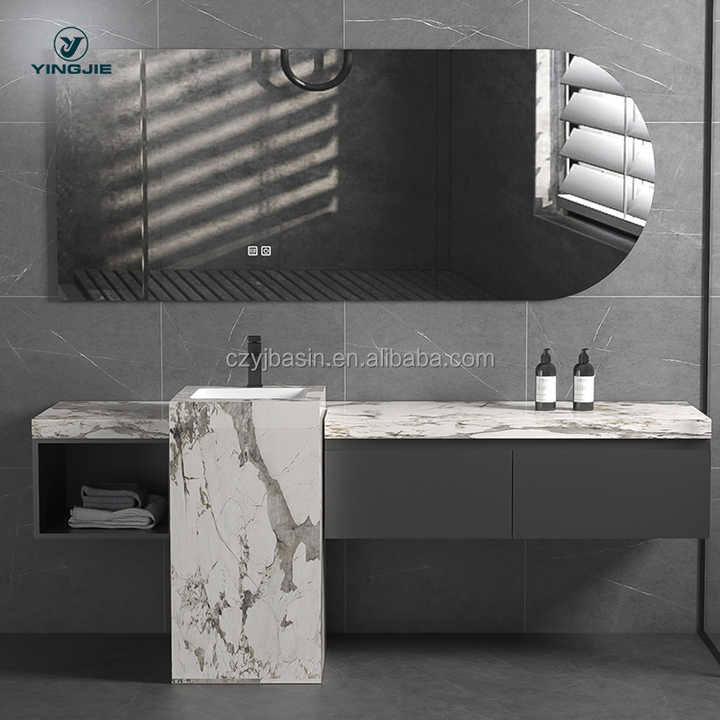 Floor Standing Sintered Stone Column Integrated Seamless Ceramic Basin Customized Vanity