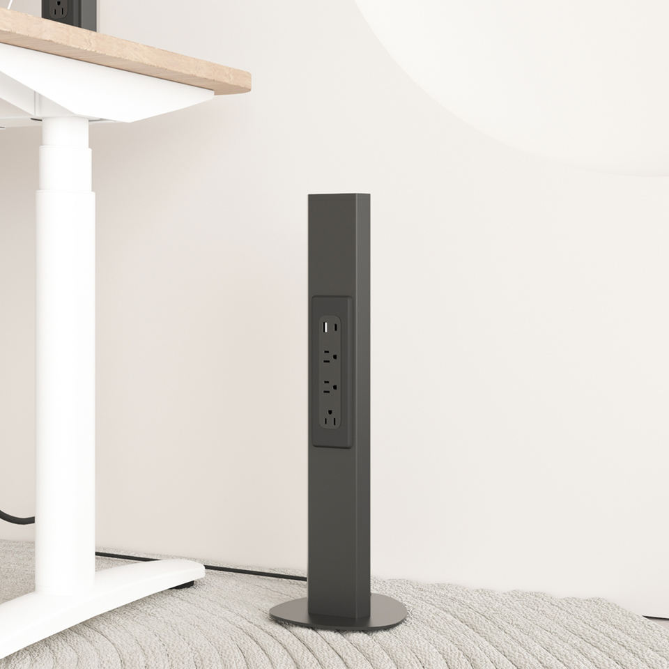 Multiprise sur pied avec 3 prises CA, 2 ports de charge USB, mise à la terre automatique, design moderne, 10A, NFC