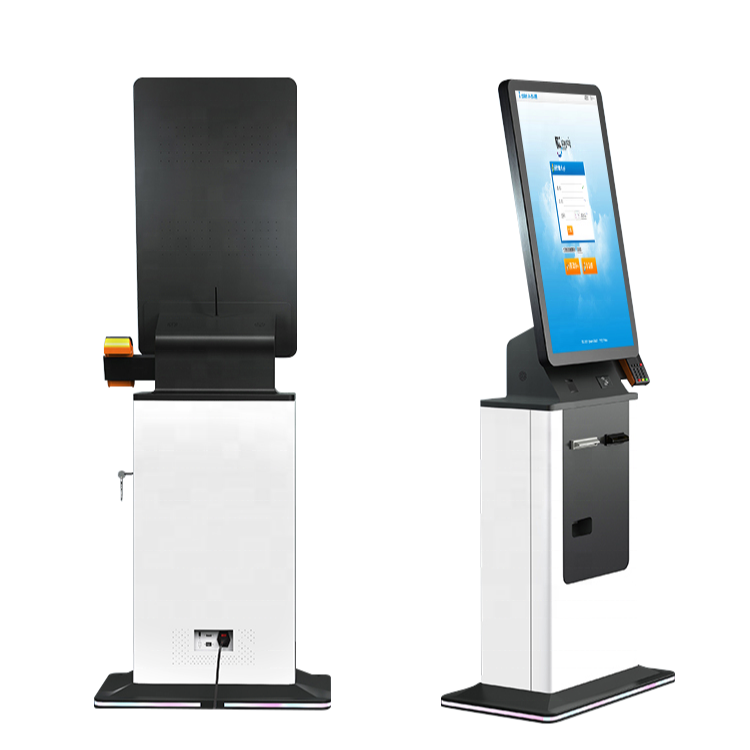 Bornes de commande automatique avec écran tactile de 32 pouces, paiement par carte bancaire et pièces, avec imprimante et scanner de code QR
