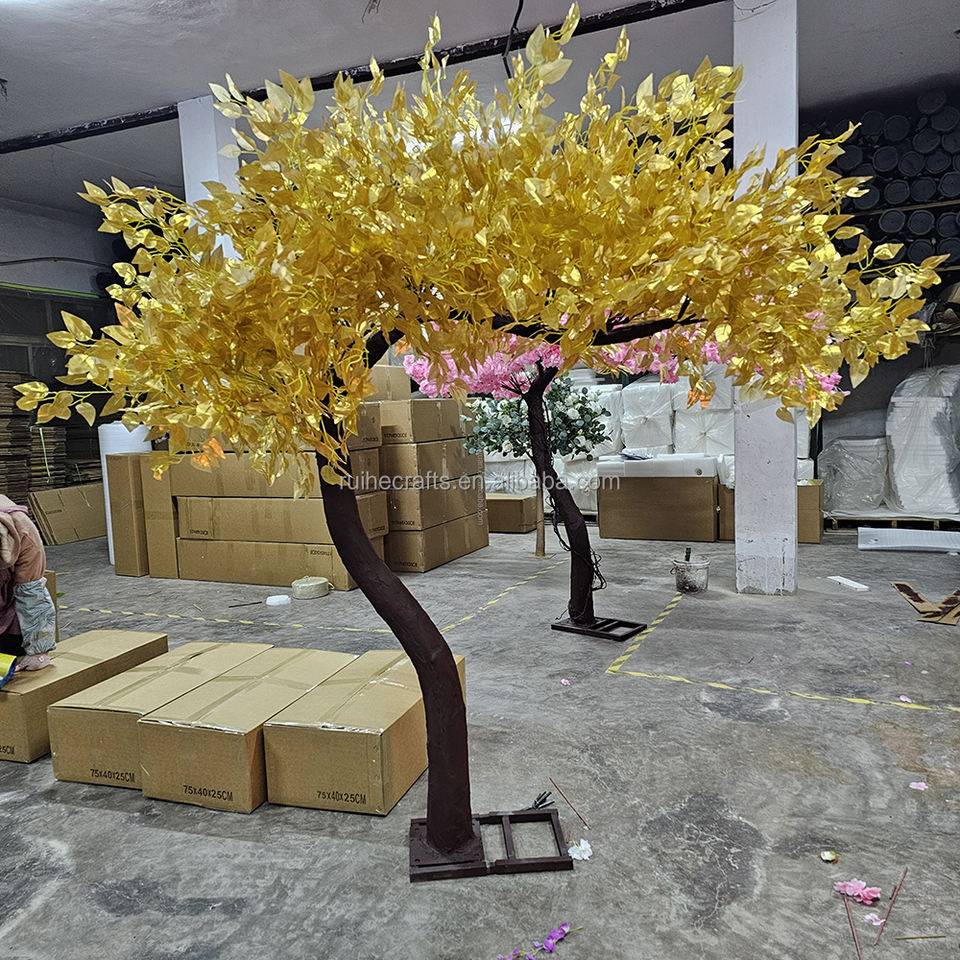 Grand pêcher artificiel au sol LED cerisier arbre doré décoratif pour la décoration d'exposition d'hôtel de mariage
