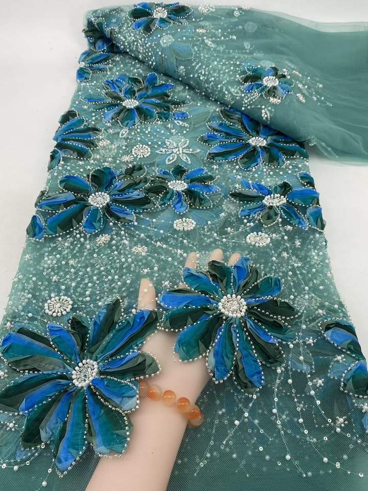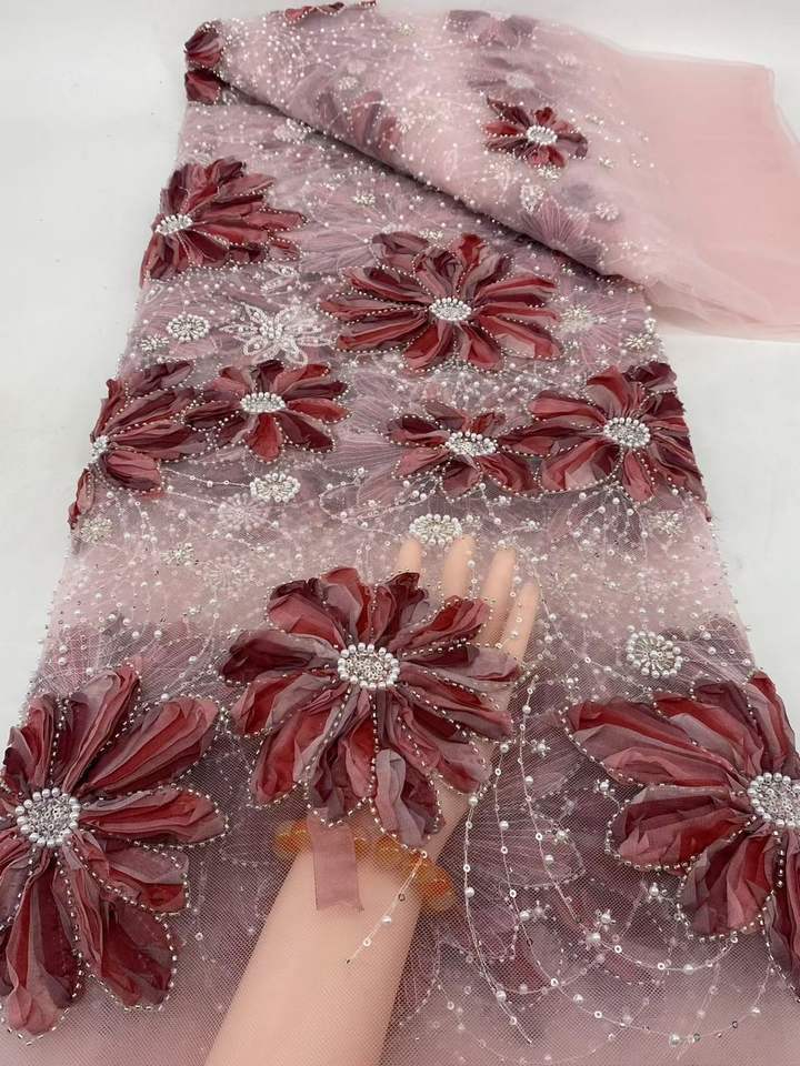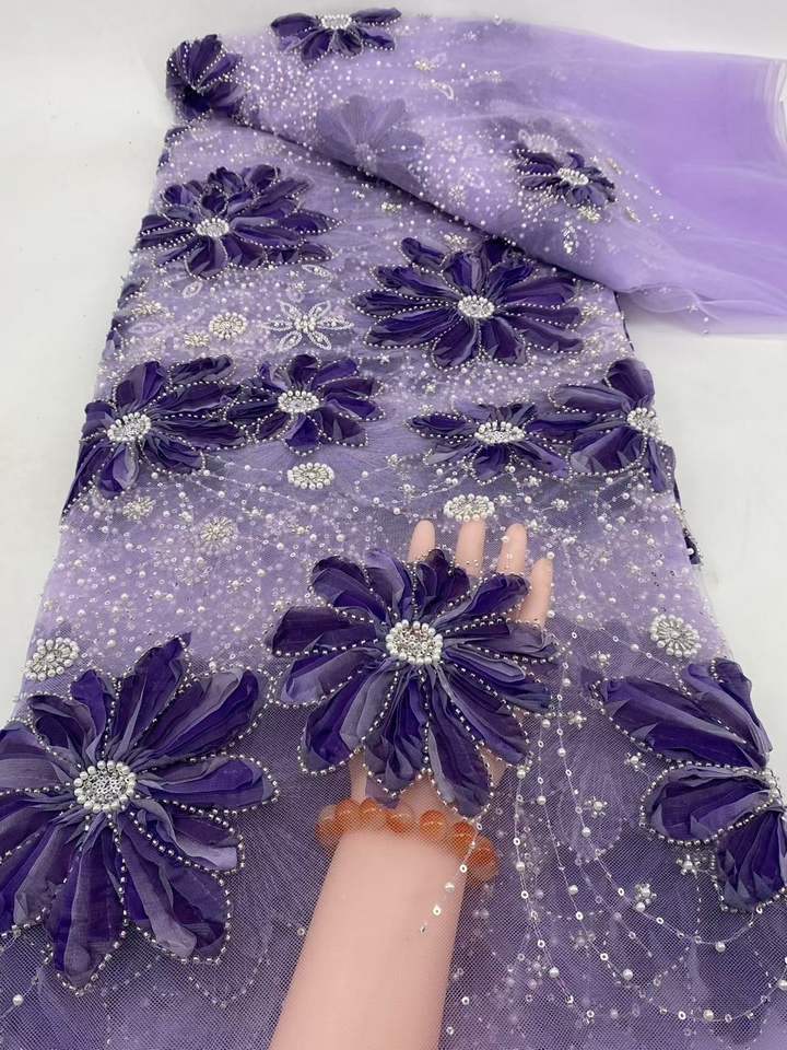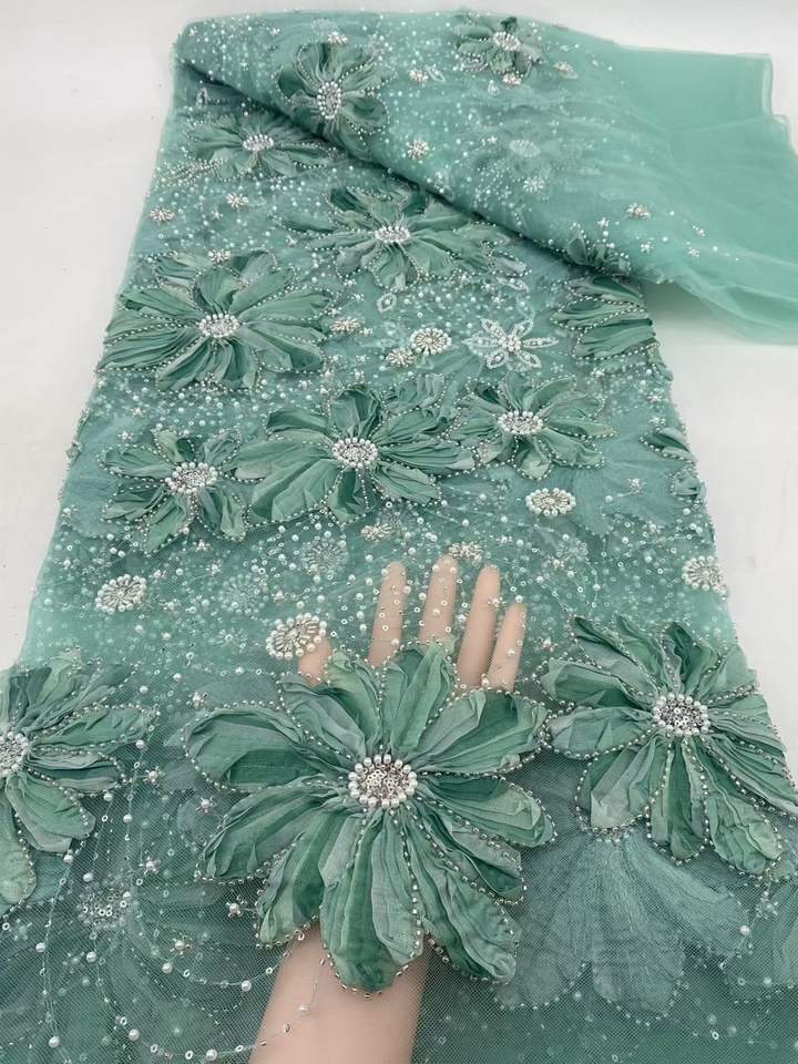Flora diamant brodé à la main 2025 haute qualité perles lourdes paillettes Net français dentelle tissu matériel pour robe