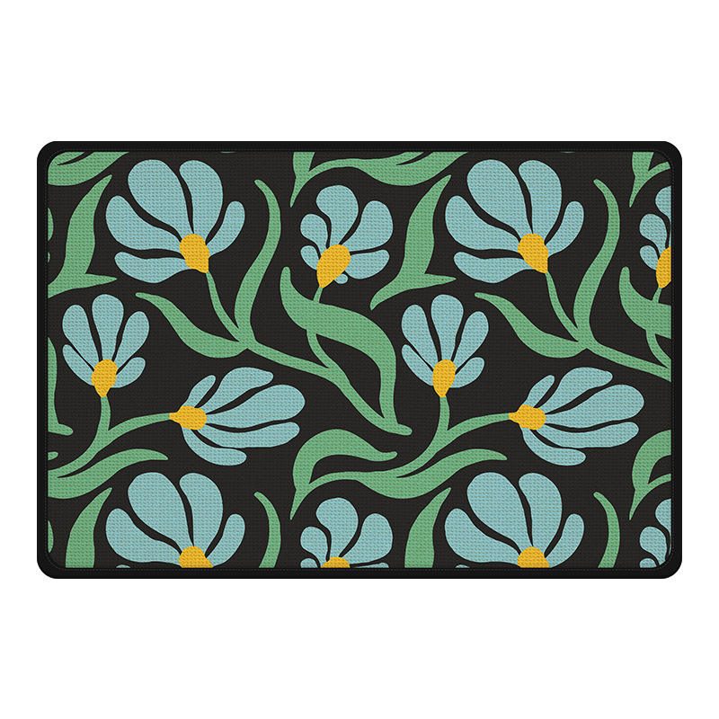Tapis de salle de bain rectangulaire à motif floral, imitation lin, antidérapant, absorbant, pour entrée de maison