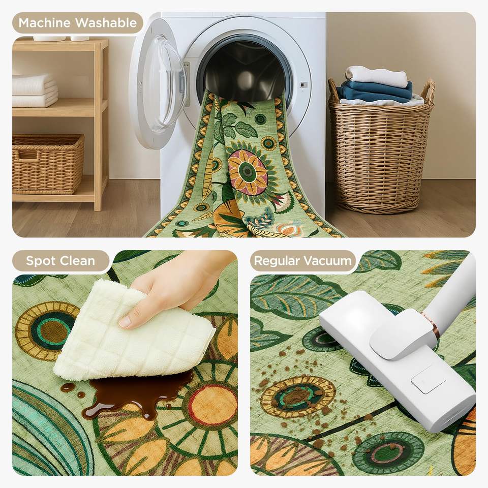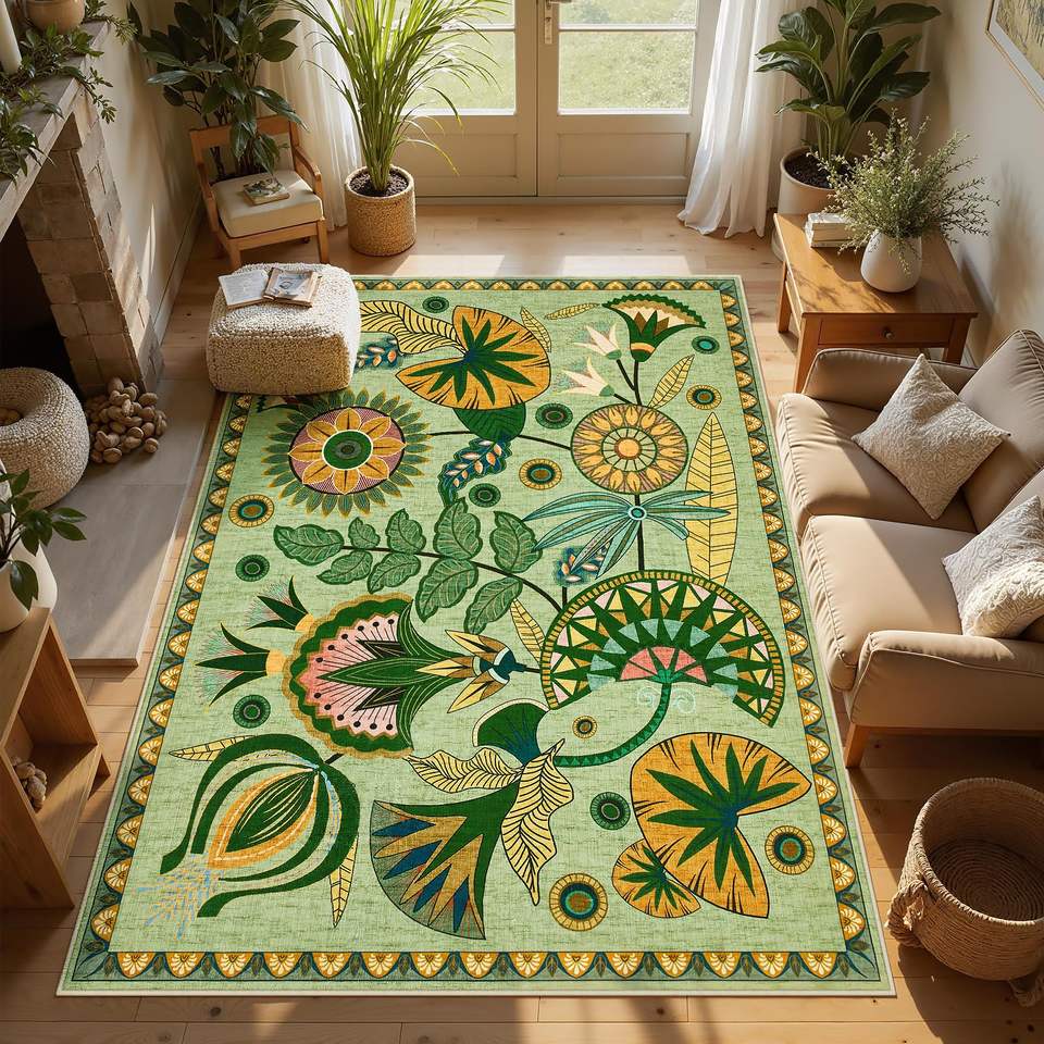 Tapis lavable floral bohème, tapis de salon vintage antidérapant, tapis coloré pour salle à manger, cuisine, entrée, dortoir