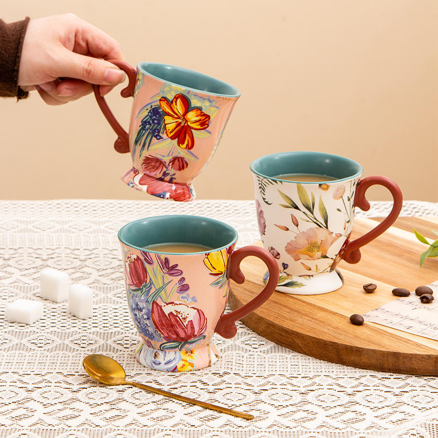 Mug en céramique à motif floral 190 ml, design tulipe, pour le petit-déjeuner, le café, le thé, vaisselle