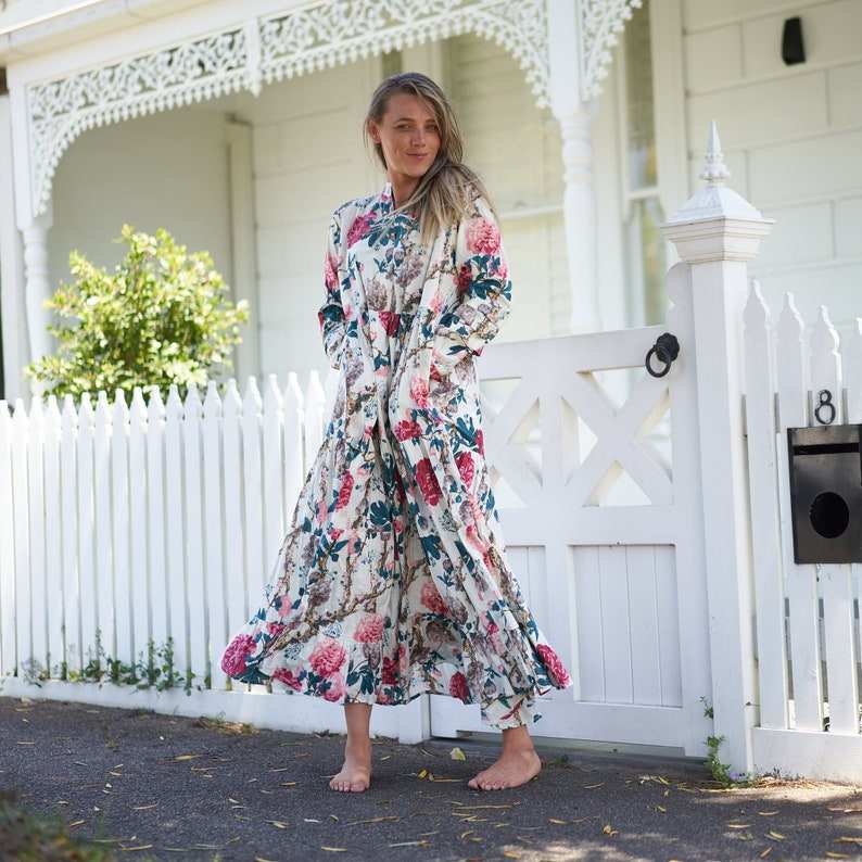 Floral Cotton Maxi Dress Boho Kimono Wrap Summer Dress Lightweight Flowing Floral Outfit Perfect Gift for Her or Him Birthday