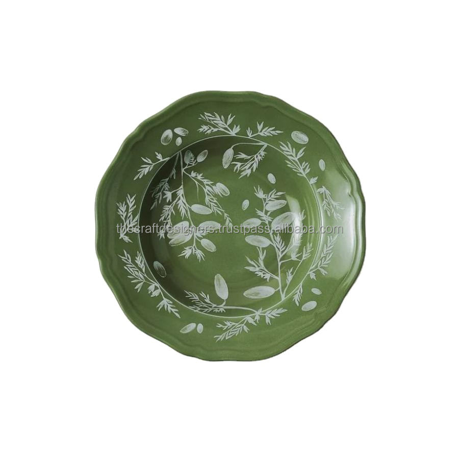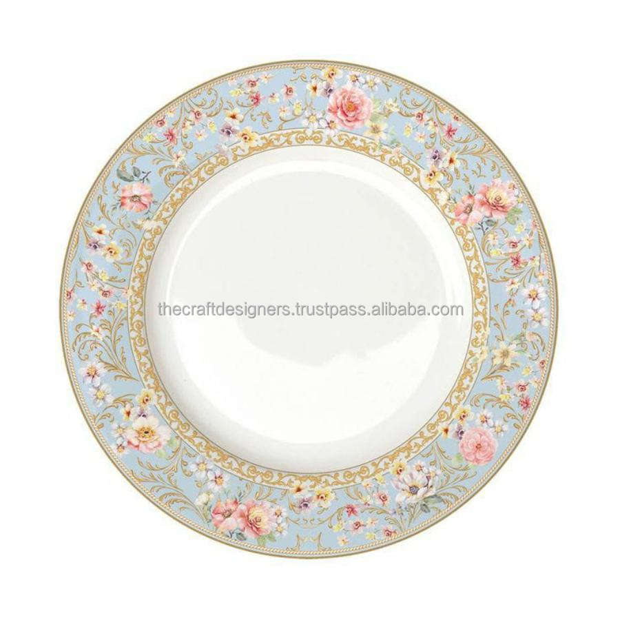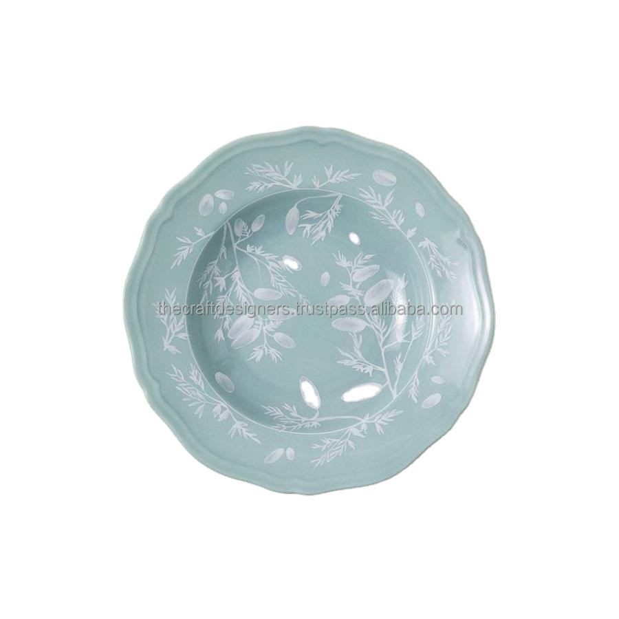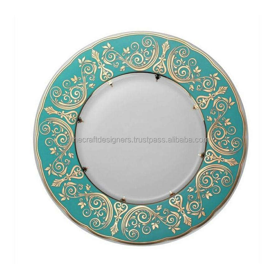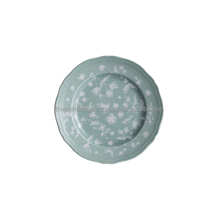 Disque de plateau rond d'affichage de nourriture de conception florale assiette de chargeur en émail de haute qualité vaisselle décorative assiette de service avec Logo