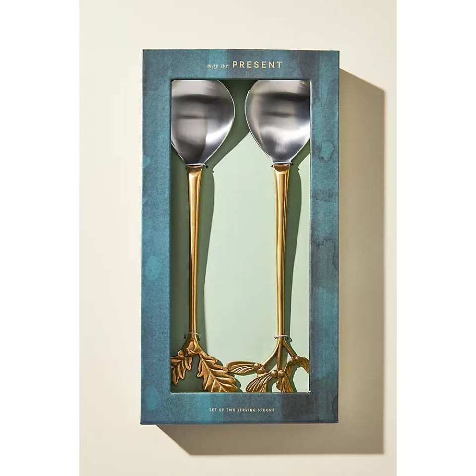 Serveurs à salade en acier inoxydable avec poignées en or de créateur floral idéaux pour les cadeaux et la décoration à thème de luxe de l'Inde