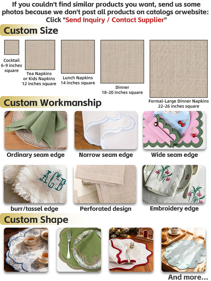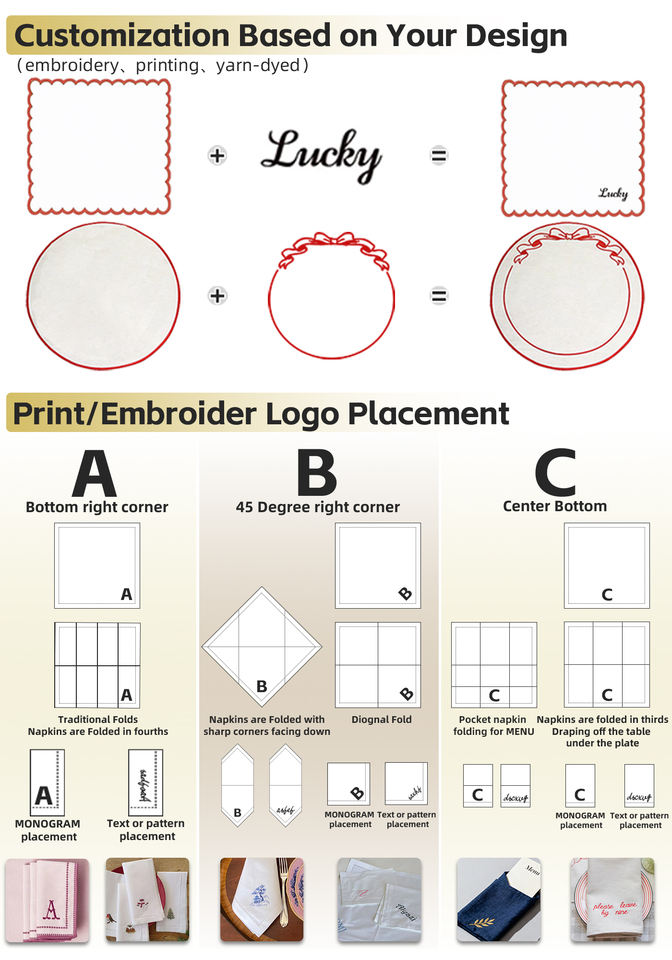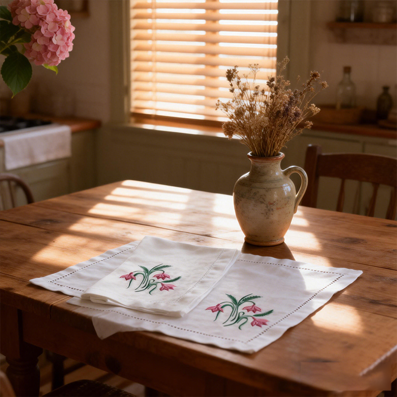 Serviettes en Lin Broderie Florale Lavables Écologiques Personnalisées pour Table, Mariage et Restaurant, Blanches