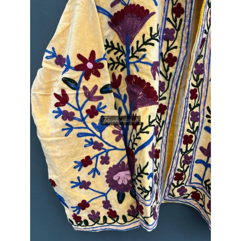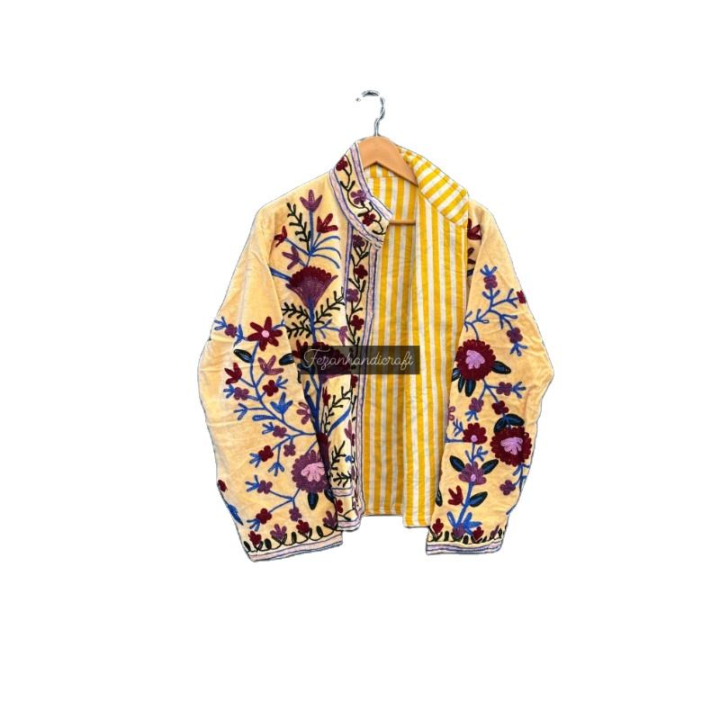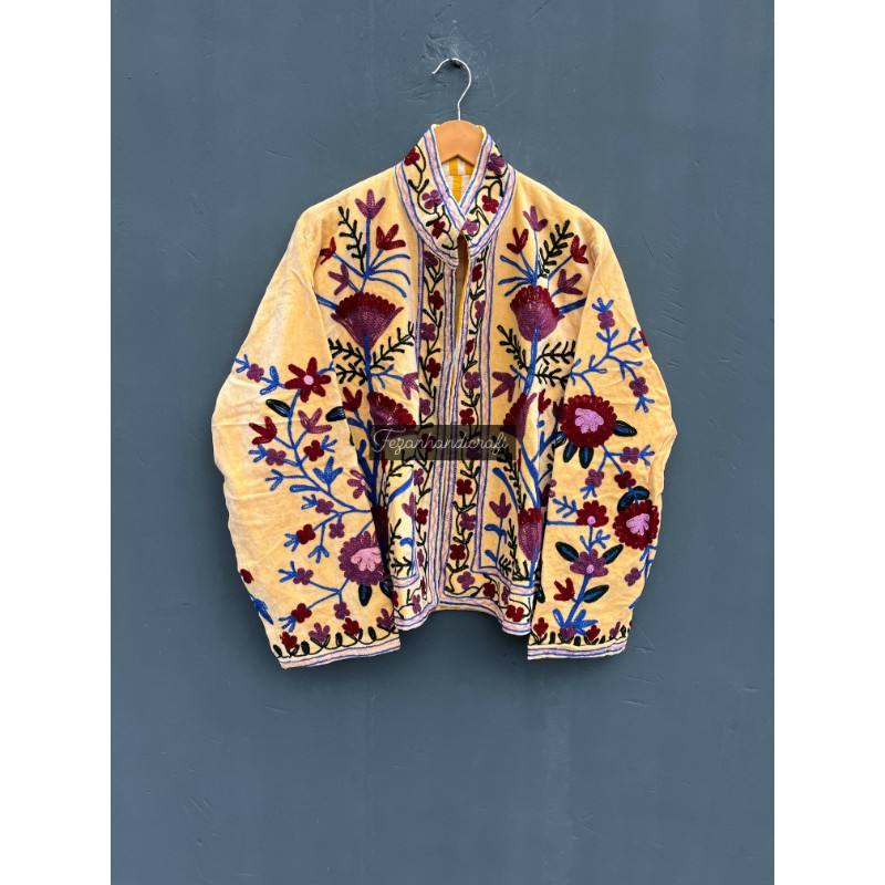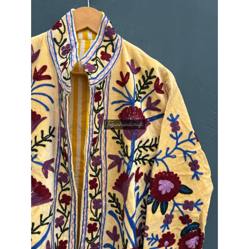 Veste Suzani en velours à broderie florale pour manteau court d'hiver unisexe avec doublure en coton Style Boho Hippie pour femme saison d'automne