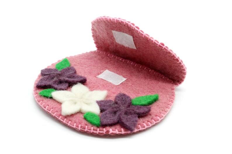 Pour pochette en feutre floral rose faite à la main au Népal Portefeuilles de tous les jours et idées cadeaux pour amis Sac à main en laine