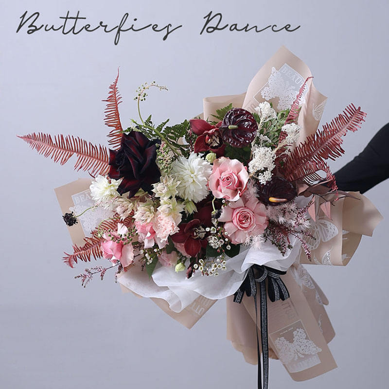 Paquet de danse papillon fleur fleur papier papillon série imperméable gelée Film Bouquet matériel