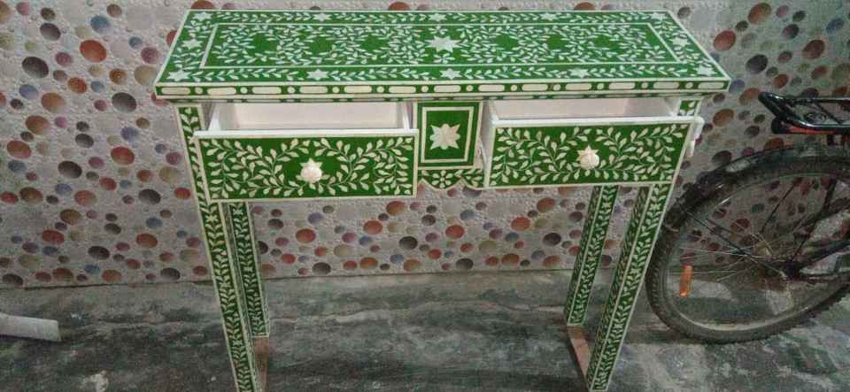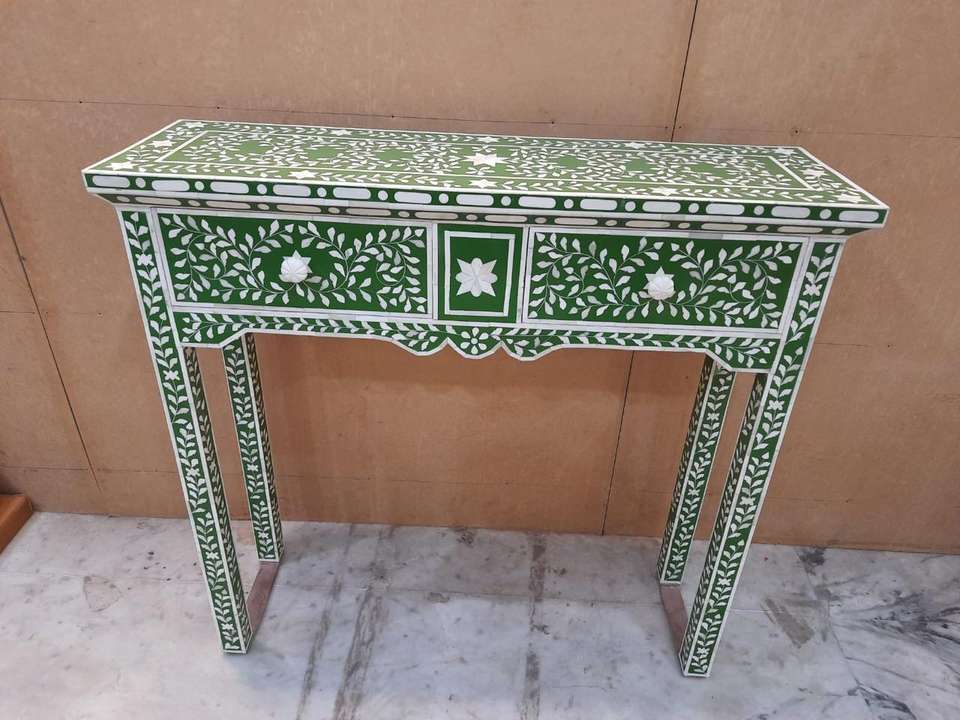 Table console incrustée d'os vert floral à 2 tiroirs rangement moderne pour salon salle à manger chambre à coucher