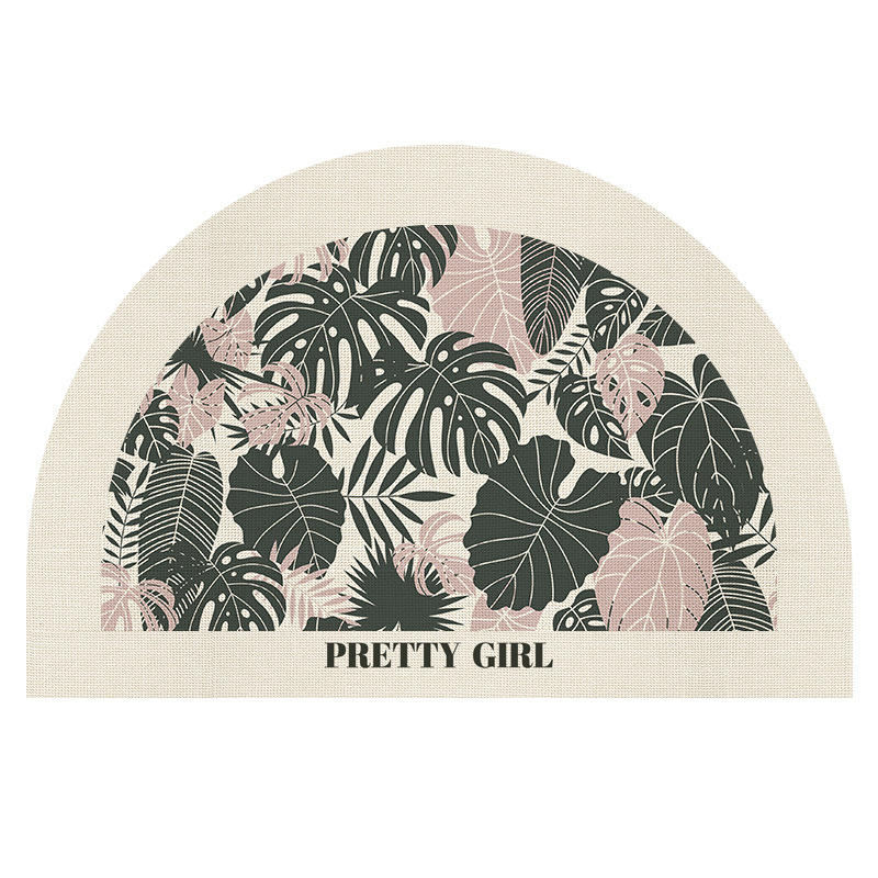 Tapis de salle de bain demi-cercle floral imitation lin antidérapant absorbant séchage rapide pour la maison