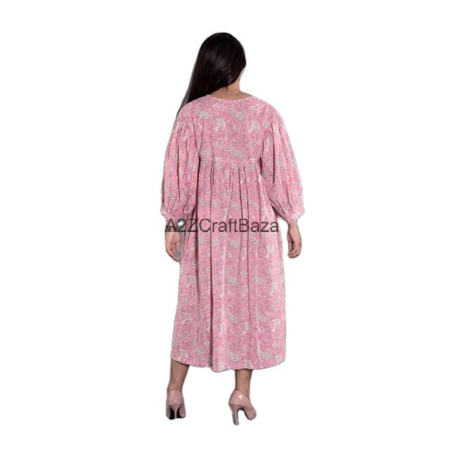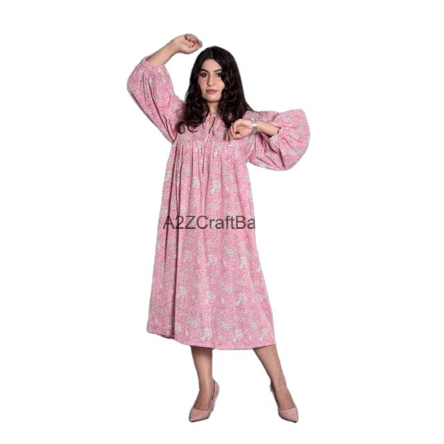 Women's Custom Size Eco-Friendly Cotton Floral Print Bodycon Midi Dress Natural Waist Long Sleeve Casual Summer Length Washable