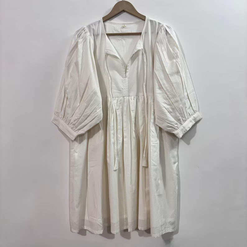 Mini-robe formelle en coton 100% naturel, imprimé floral dessiné à la main, faite à la main, écologique, col en V, manches 3/4, ourlet à volants en dentelle, lavable