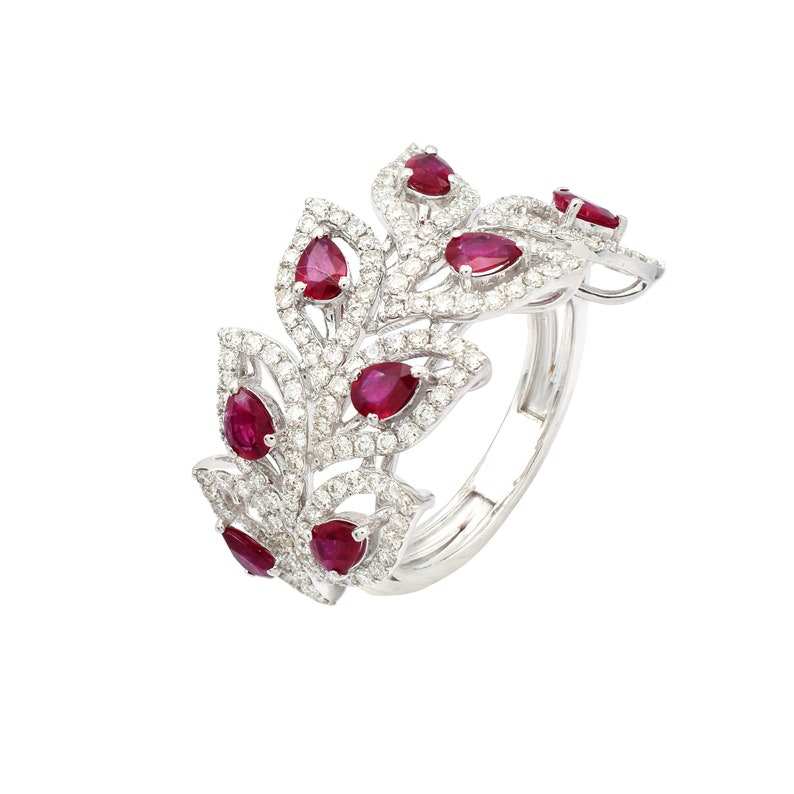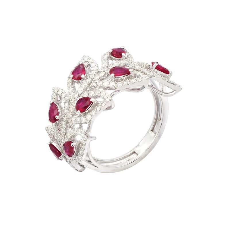Keyword:Floral Inspired Ruby 14K White Gold Band Ring Adds Charm & Romantic