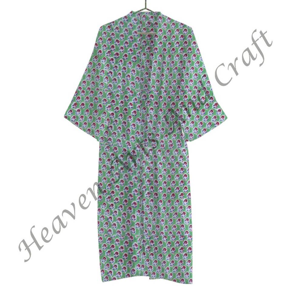 Kimono floral Robe Style indien main bloc imprimé pur coton Cardigan élégant Wrap pour l'été-pour robe de nuit