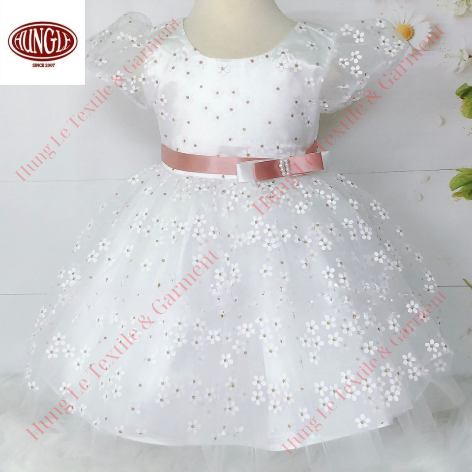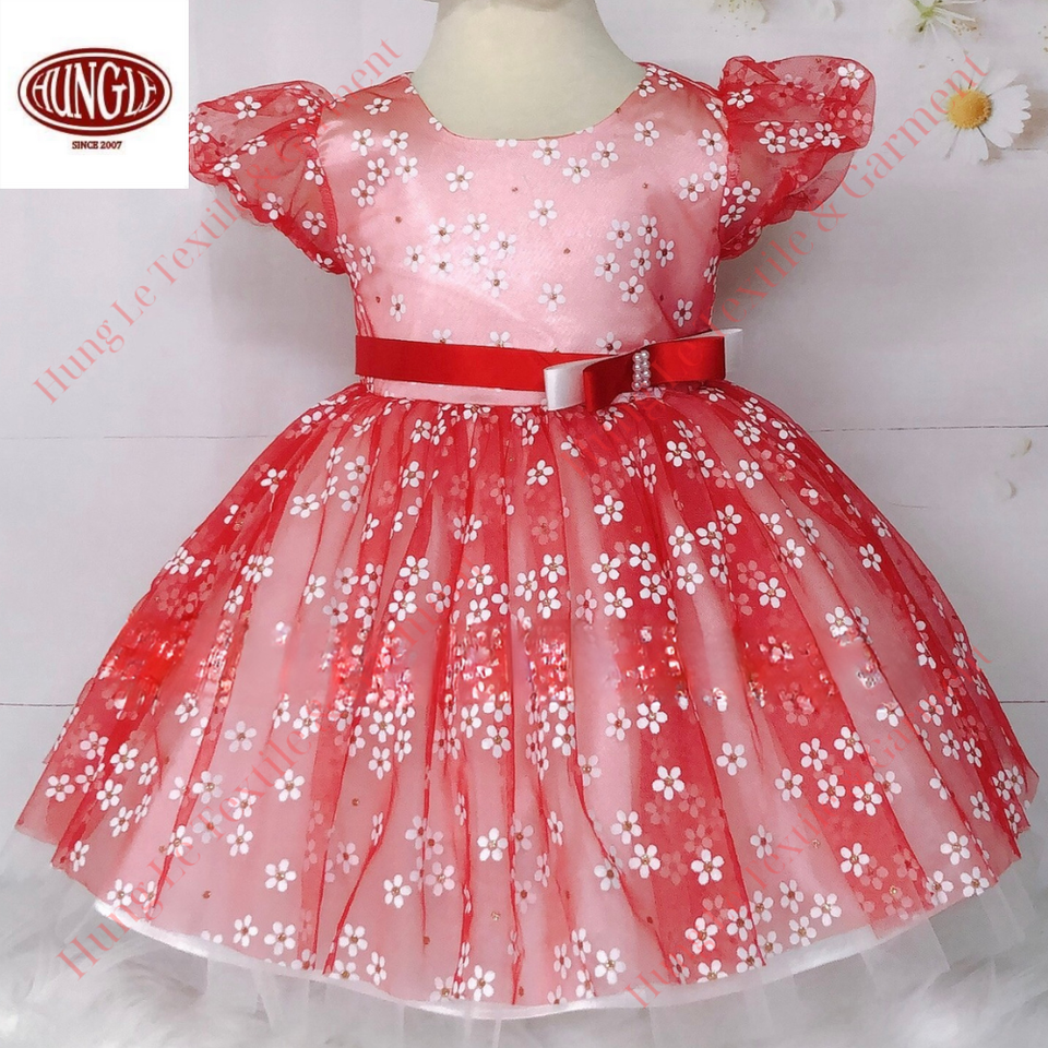 Maille florale avec manches courtes manches bouffantes robe à col rond pour les filles robe de soirée superposée au genou approvisionnement ODM