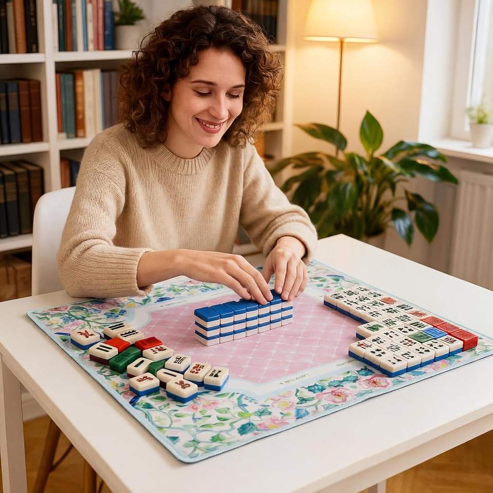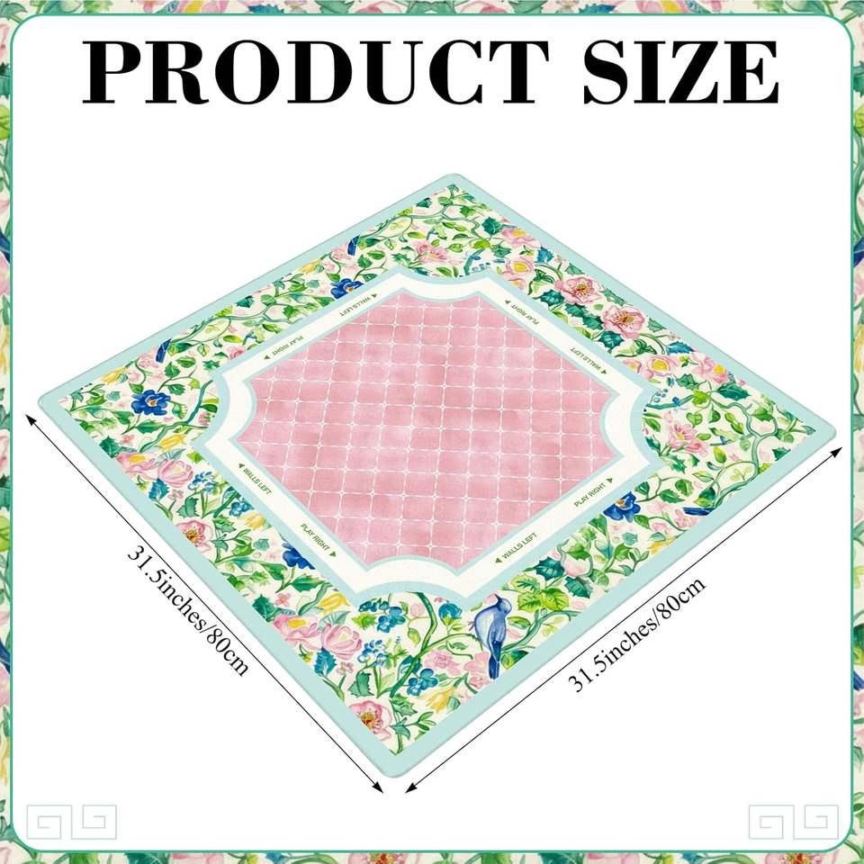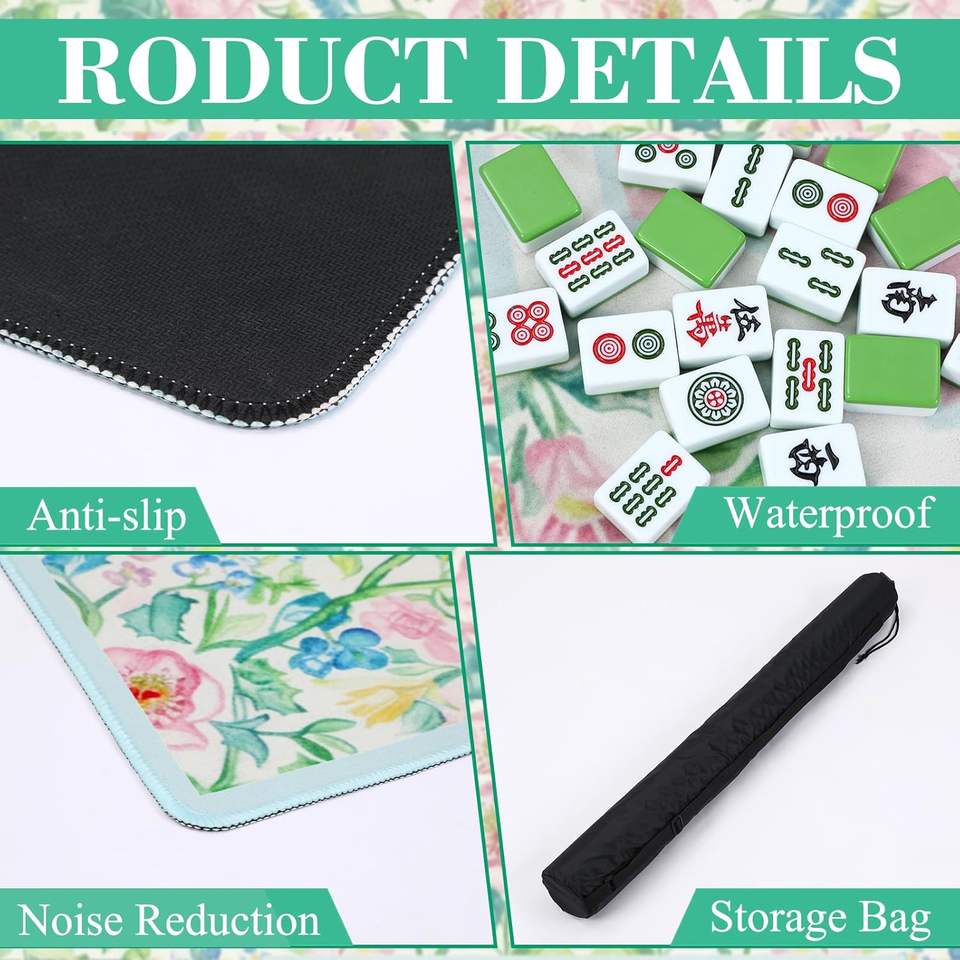 Tapis de mahjong floral antidérapant avec sac de transport pour cartes de poker et jeux de tuiles, couverture de table insonorisante, couleur pastel