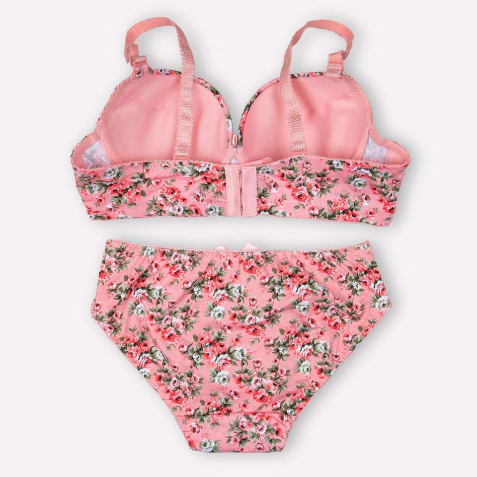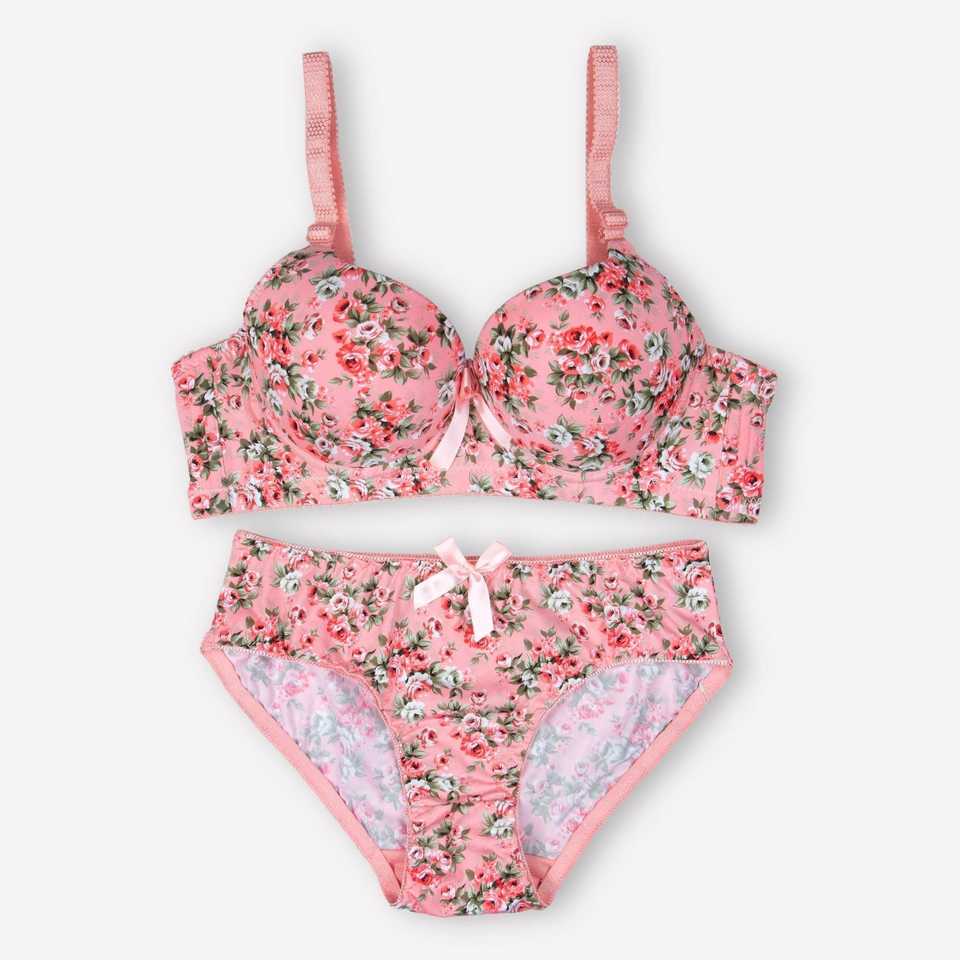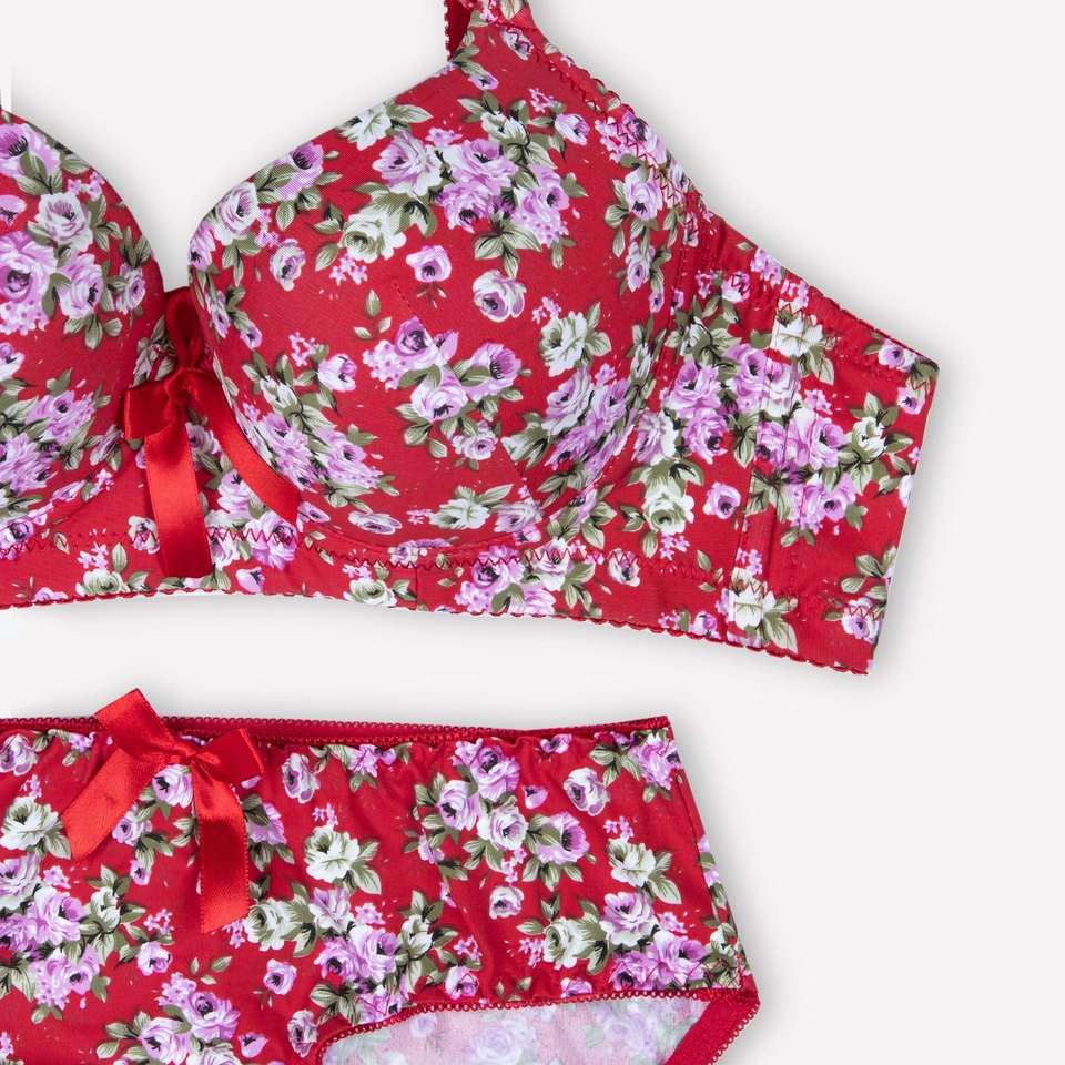Lot de 3 soutiens-gorge et slips rembourrés floraux (rose rouge bleu)