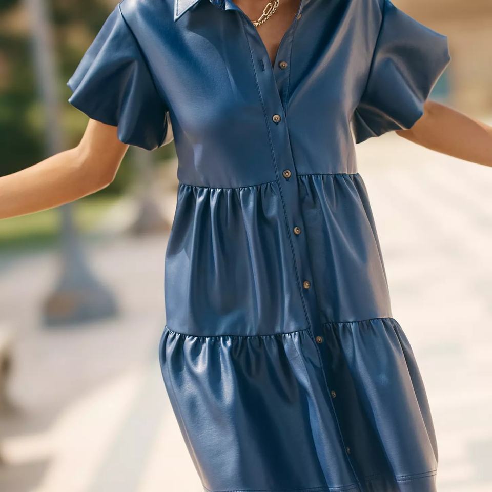 Robe chemise courte en fausse fourrure à motif floral, décontractée, respirante, longueur midi, avec dentelle et broderies, taille naturelle
