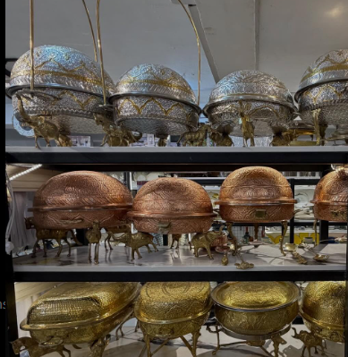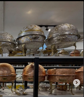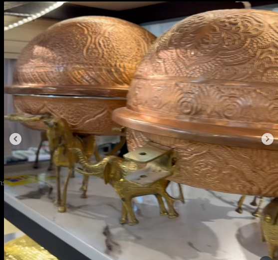 Ensemble de plats à friture pour table à manger de luxe à motif floral fleurs en laiton suspendues finition or/argent capacité de 5 litres en acier inoxydable