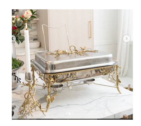 Floral Pattern Luxury Dinning Table Chaffing Dish with Hanging Floral Brass Flowers Vintage Silver Chafing Dishes 5L