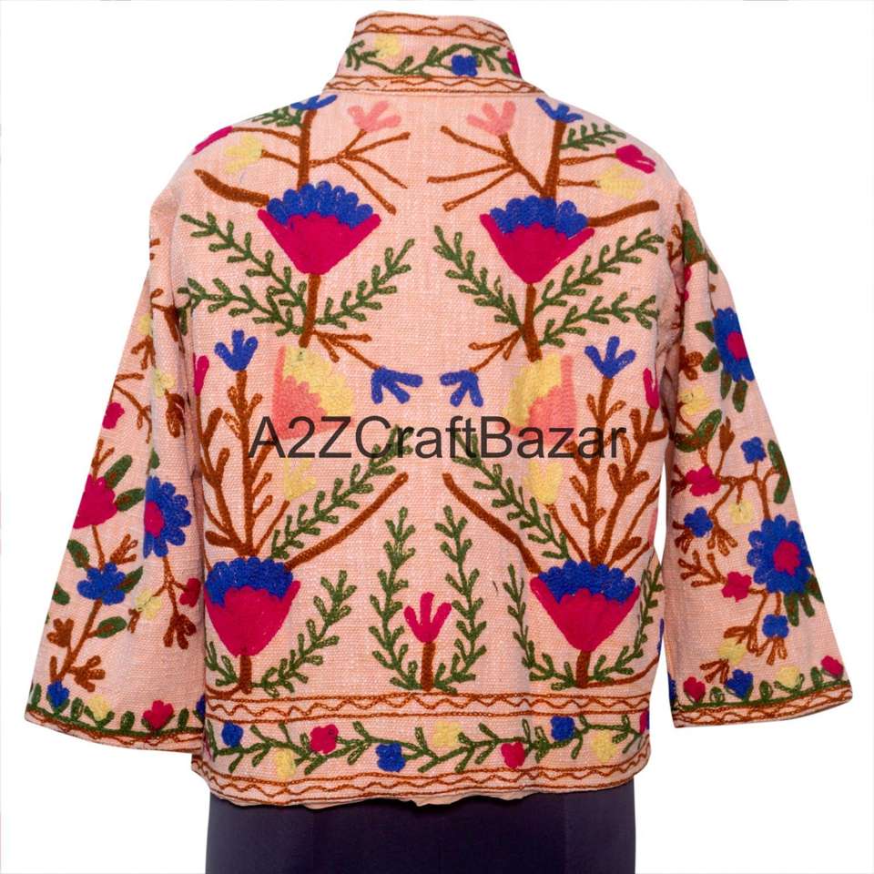 Blouson Bomber Vintage à Motif Floral Printemps/Été/Hiver 100% Coton Broderie Machine Design Dessiné à la Main Écologique Col en V