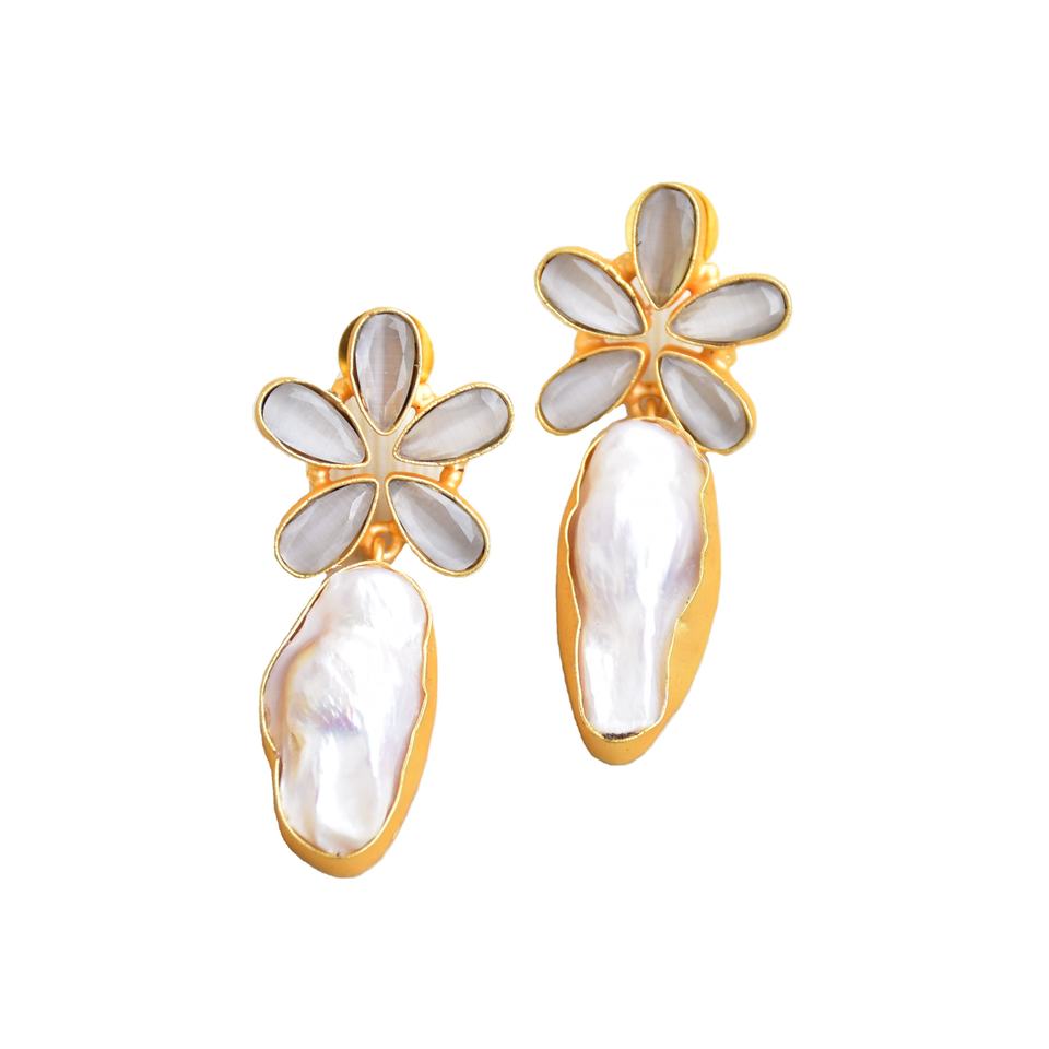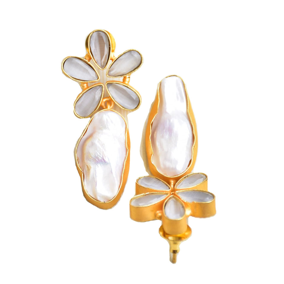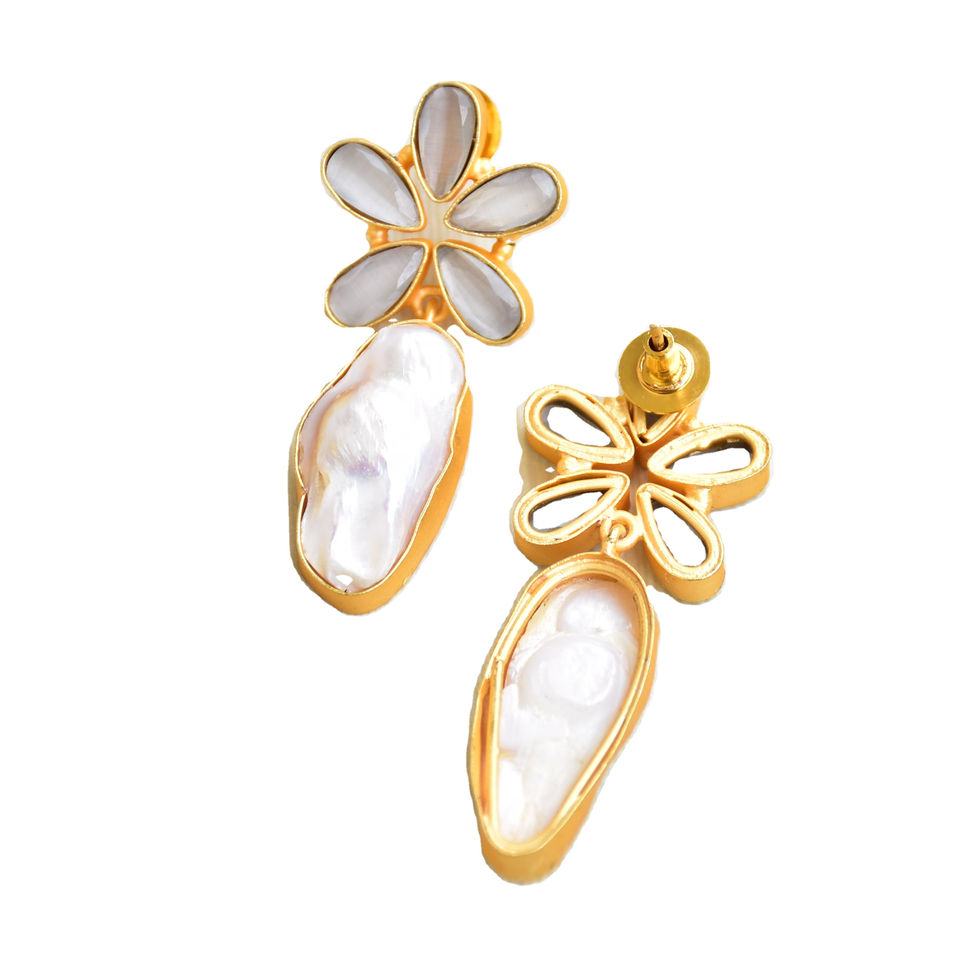 Boucles d'oreilles pendantes en laiton tendance, perles artisanales, semi-précieuses, finition plaquée or 18 carats, design bohème chic, qualité supérieure B2B