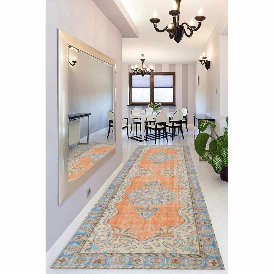Tapis de style persan floral : orange mat, tapis d'intérieur antidérapant, tapis doux non tissé