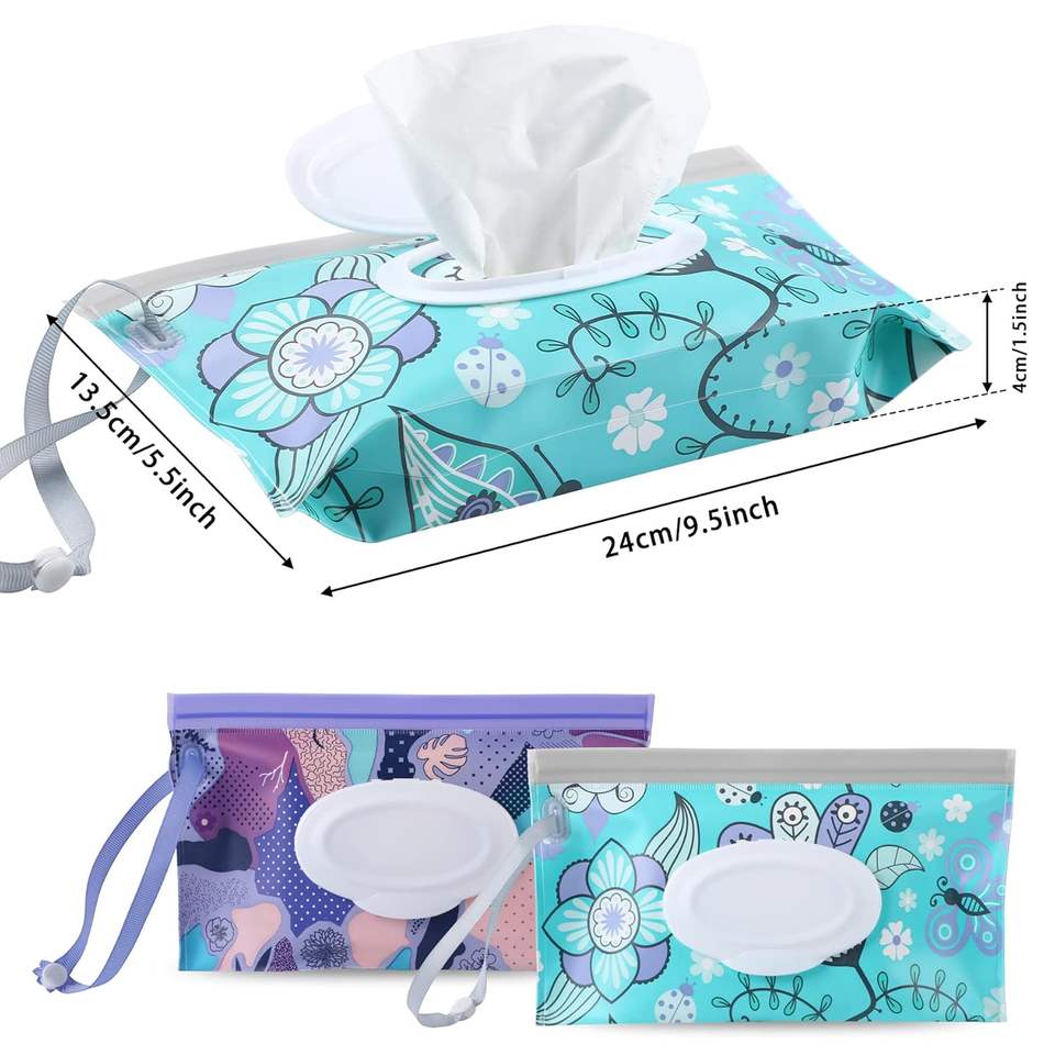 Porte-distributeur de lingettes rechargeables portables florales pour bébé Conteneur de distributeur de lingettes Pochette de lingettes humides de voyage réutilisable