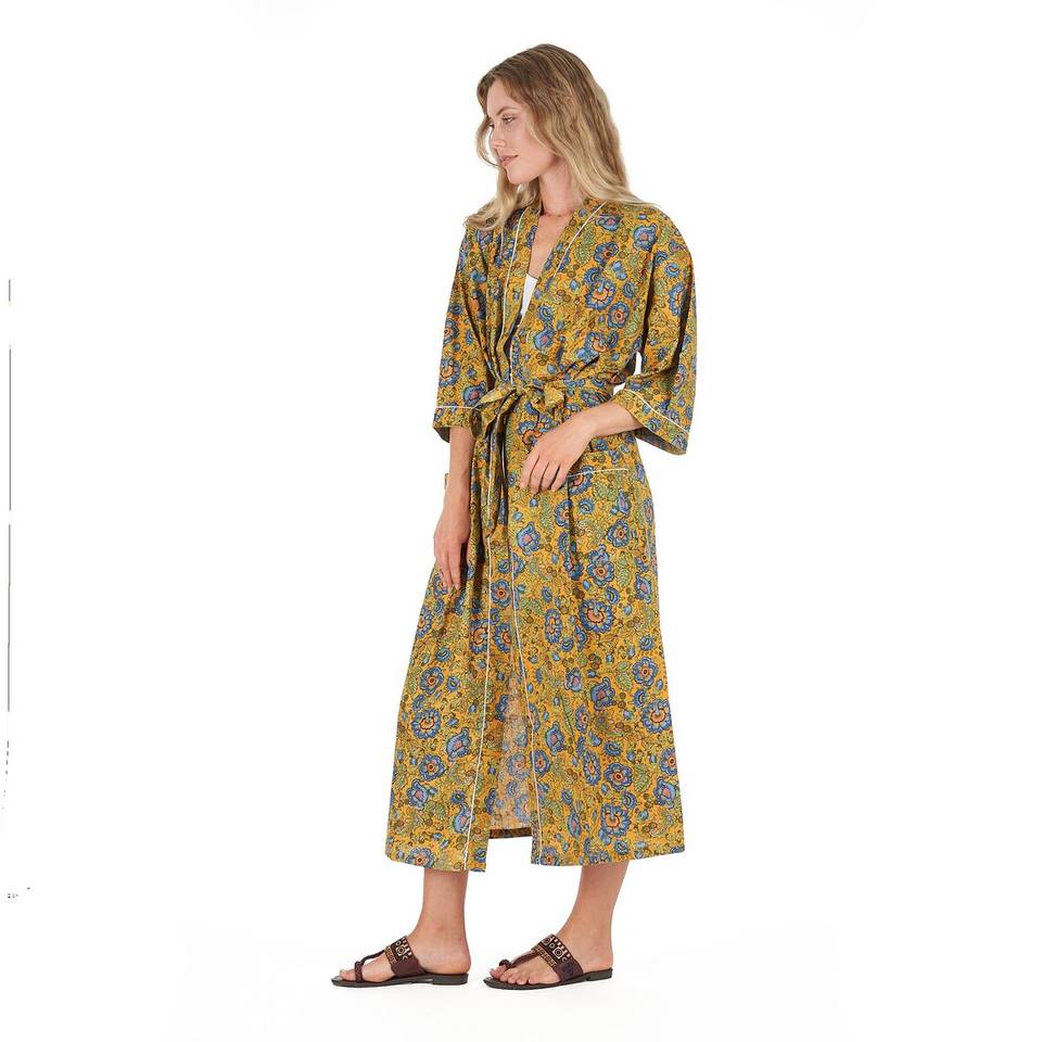 Imprimé floral Boho Ins Style Coton Kimono Robe Léger Débardeur Manches À Motifs Respirant Bouton Printemps Vêtements Utilisation